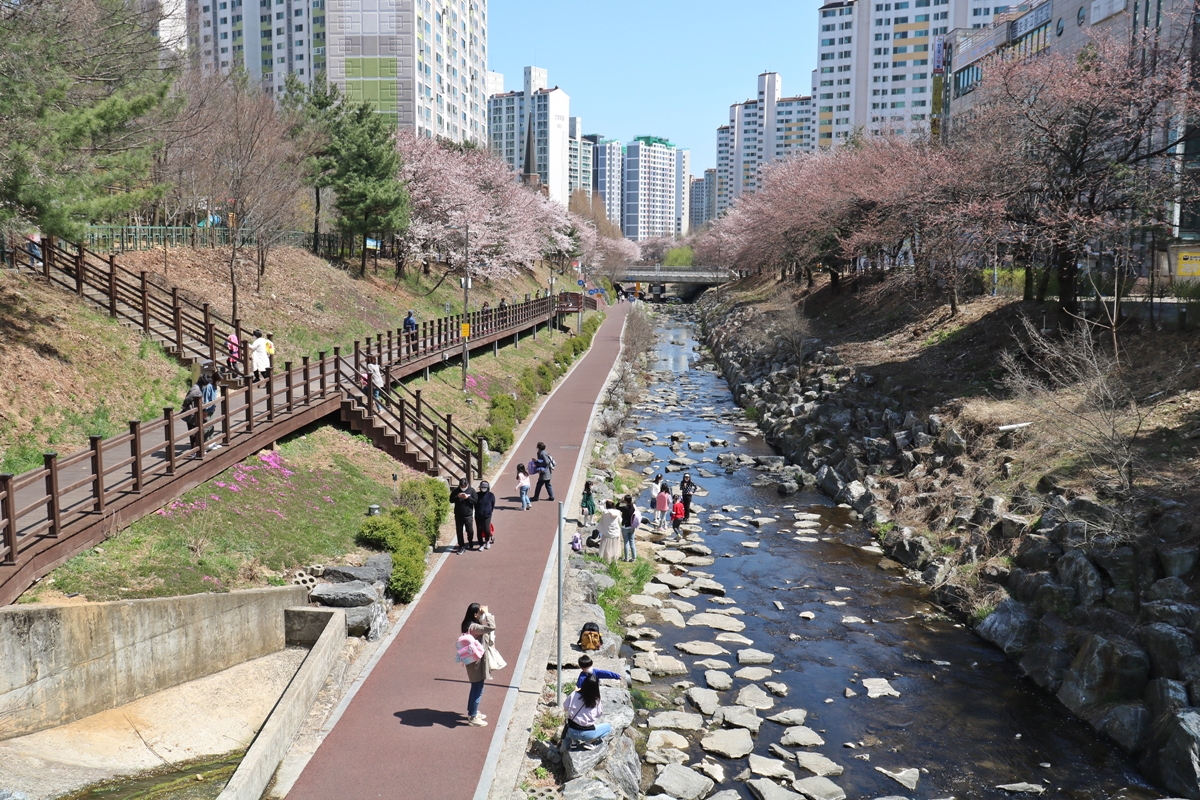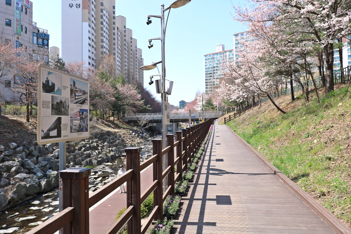 정평천 벚꽃길은 보행로와