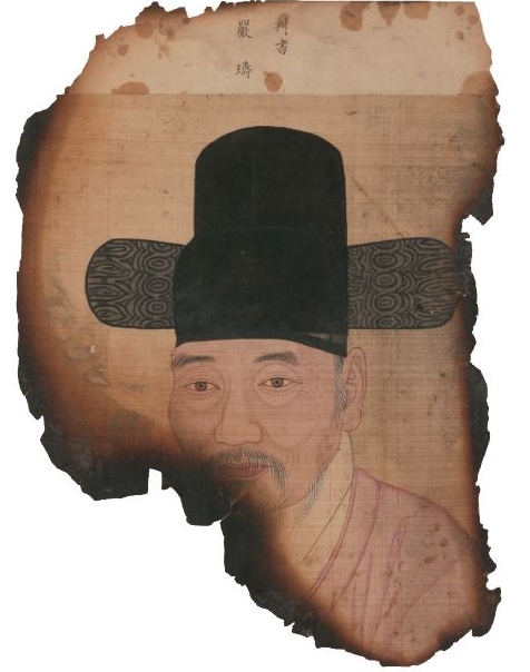 엄숙(嚴璹,1716~1786년) 초상화입니다. 영조와 정조 시대에 활동한 문관으로 1753년 생원시에 합격하고 1757년 정시 문과에 병과로 급제하여 관직에 진출하였습니다. 형조참판, 대사간, 대사헌 등을 역임하였습니다. 상단에 적혀있는 관직 '판서(判書)'는 엄숙이 실제로 역임했던 자리가 아닙니다. 그가 지낸 최고위직 대사헌은 종2품의 관직이며 정2품에 해당하는 판서와는 차이가 있다고 합니다.