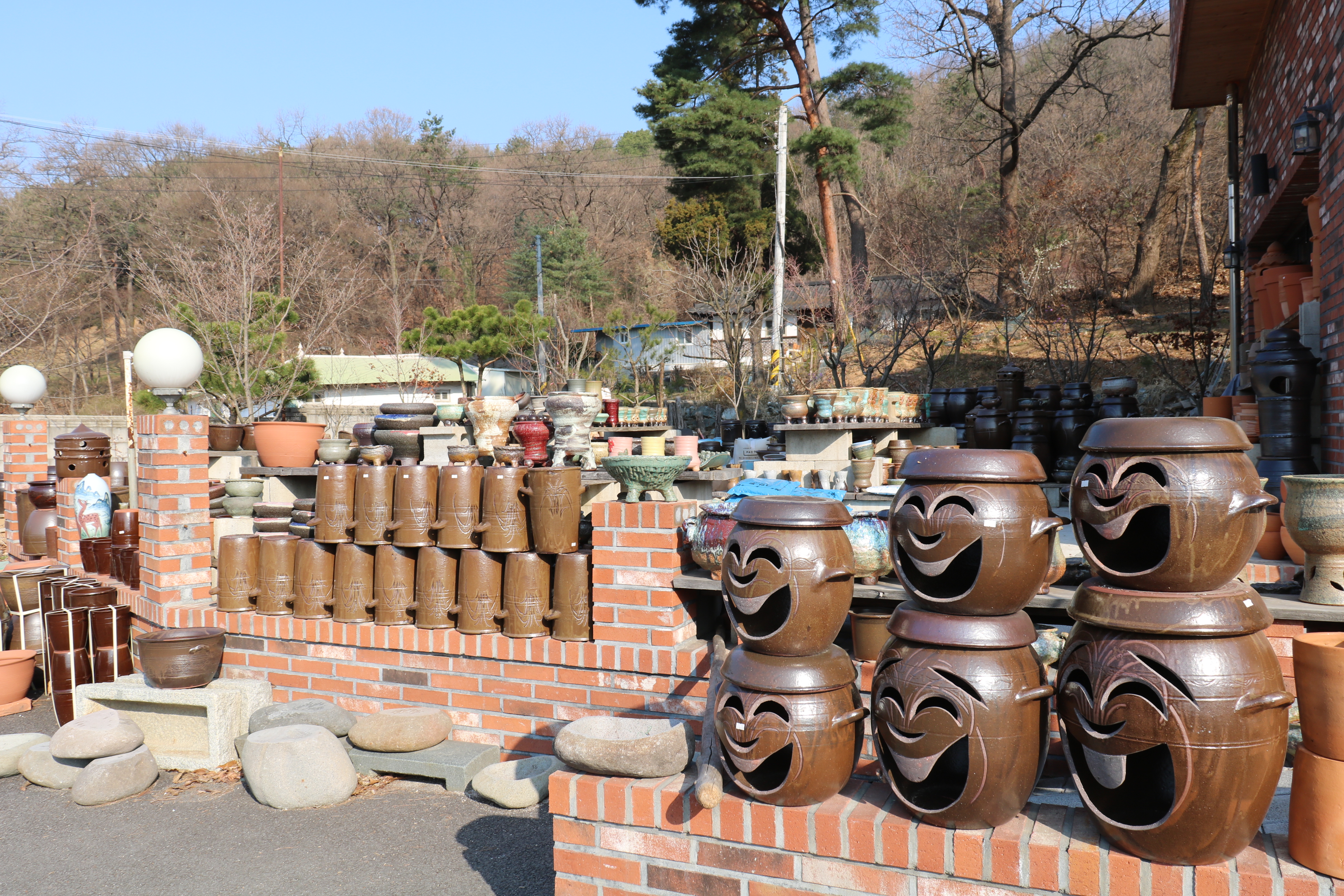 경기도 성남시에서 약 40여 분 정도 달려 능내리에 도착했습니다. 입구에 예쁜 도자기 카페가 있습니다. 도자기 중 안동 하회탈처럼 웃고 있는 항아리가 있네요. 우리네 인생 힘들더라도 이렇게 웃고 살아야겠죠.