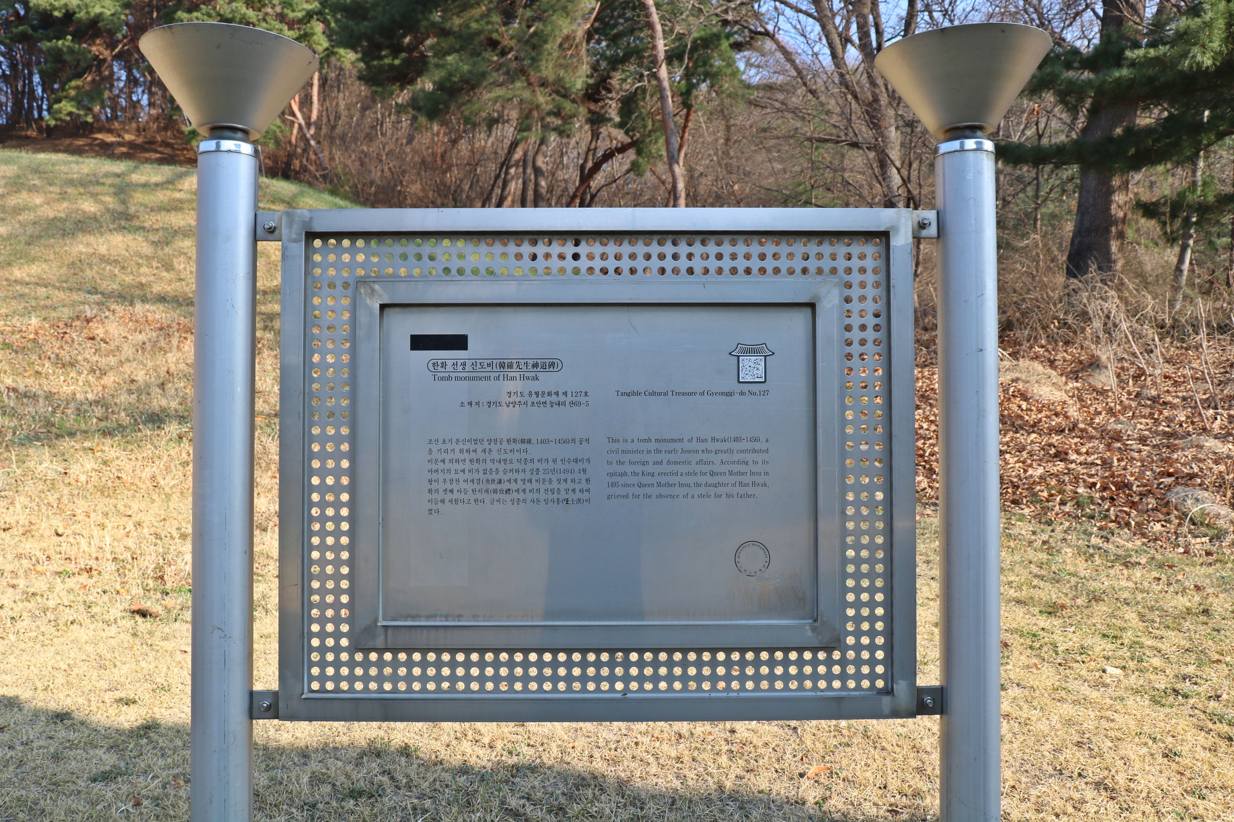 이렇게 막강한 권력을 누린 한확이지만, 검소하고 청렴했다고 합니다. 넓은 도량과 온화한 성품으로 상하의 신망이 있었으며, 명나라 황실과의 유대와 공정하고 결단성 있는 정사로 외교와 내치에 크게 공헌하였다고 평가받고 있습니다. 그래서 이렇게 죽어도 왕릉 못지않은 묘소에 잠들어 있지 않을까요?
