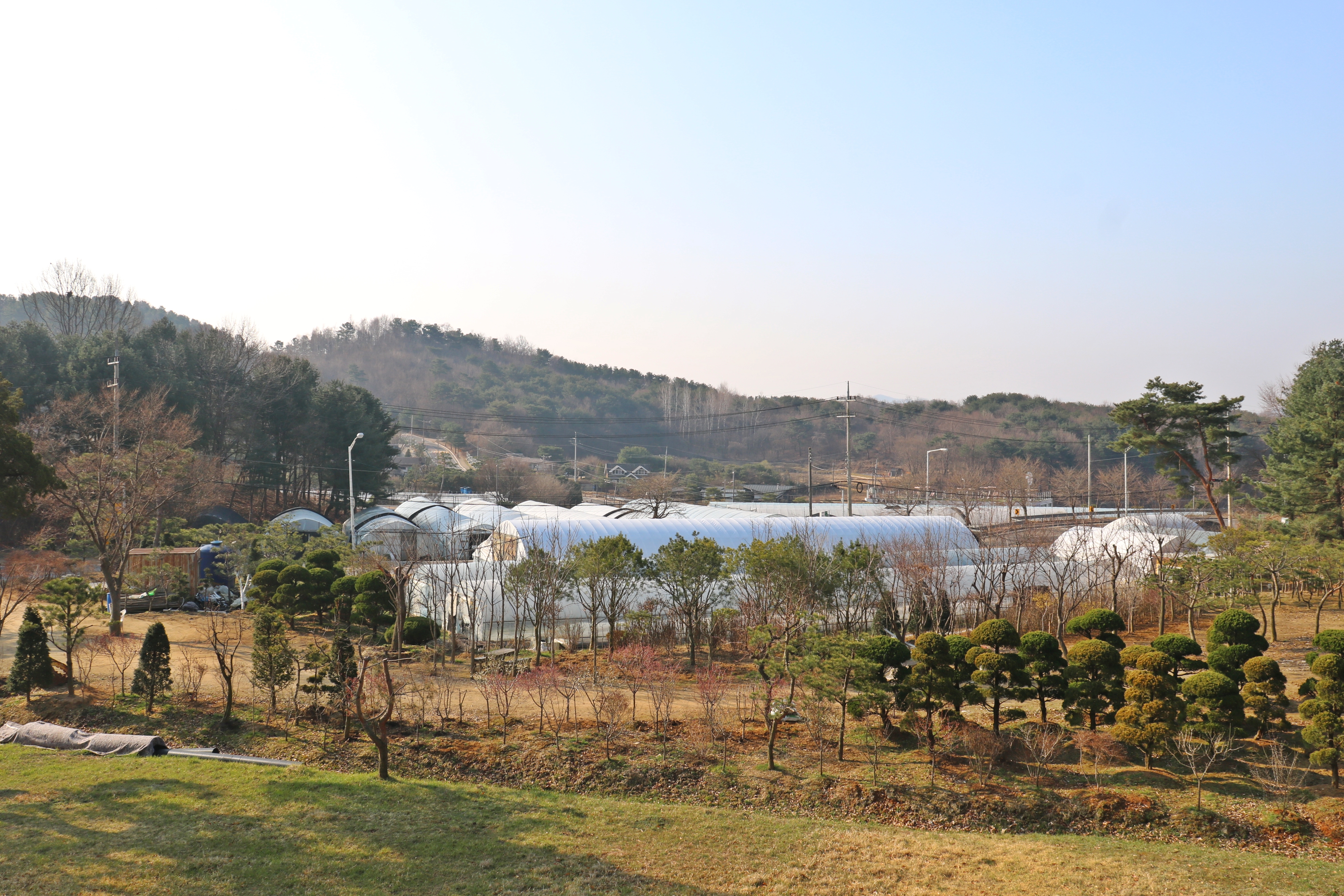 한확 묘역에서 내려다보니 신도비각과 향나무의 위엄있는 모습이 보입니다. 아래쪽 경사진 둔덕이 꽤 높아 위에서 아래를 보면 한눈에 동네가 보일 만큼 높이가 있는 산입니다. 남양주시 조안면 능내리 마을 풍경이 아스라이 내려다보입니다.