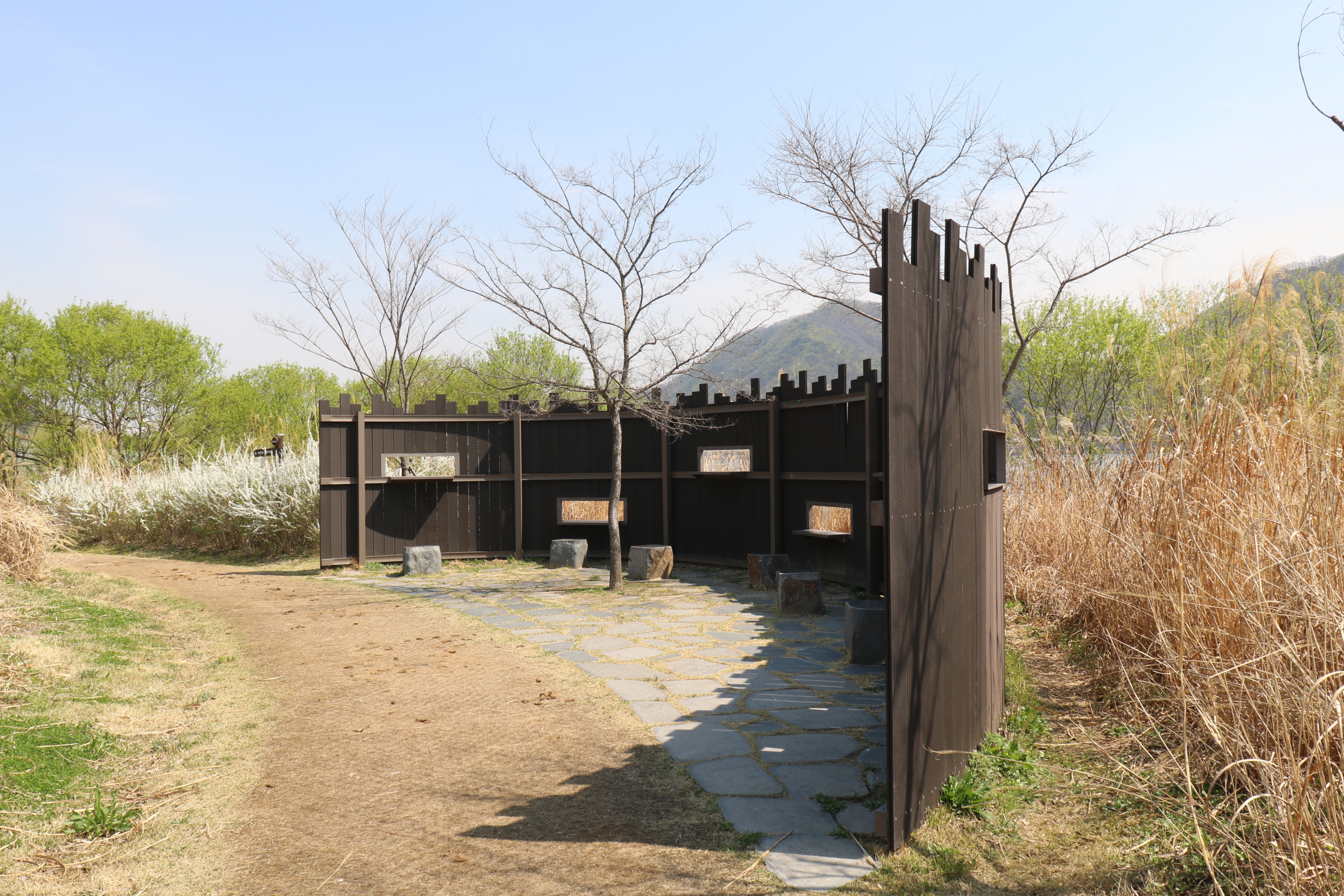 조류관찰대입니다. 마음정원에는 말똥가리, 쇠백로, 중대백로, 큰왕눈물떼새, 왜가리, 흰뺨검둥오리, 청둥오리, 쇠오리 등이 서식하고 있습니다. 그만큼 자연이 깨끗하다는 방증입니다. 이곳에서 아이들이 책에서만 배우던 조류를 직접 볼 수 있겠네요. 조류를 관찰하려면 큰 소리로 떠들면 새들이 다 도망가겠죠.