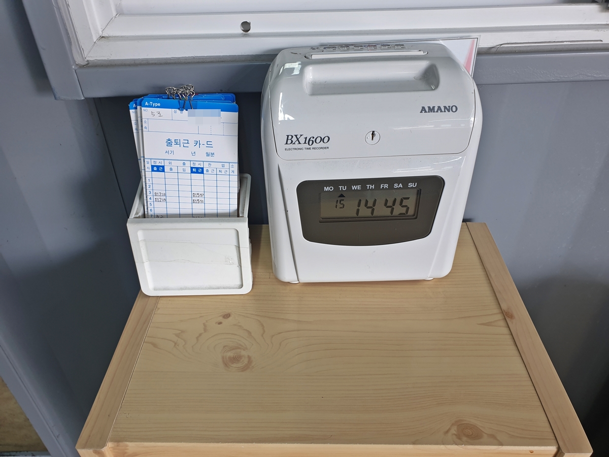 세차장 사무실 앞에 출퇴근 카드도 있습니다. 세차장은 평일인 월~금요일 오전 10시부터 오후 4시까지 예약제로 운영됩니다. 예약이 없을 때는 현장 세차도 할 수 있습니다.