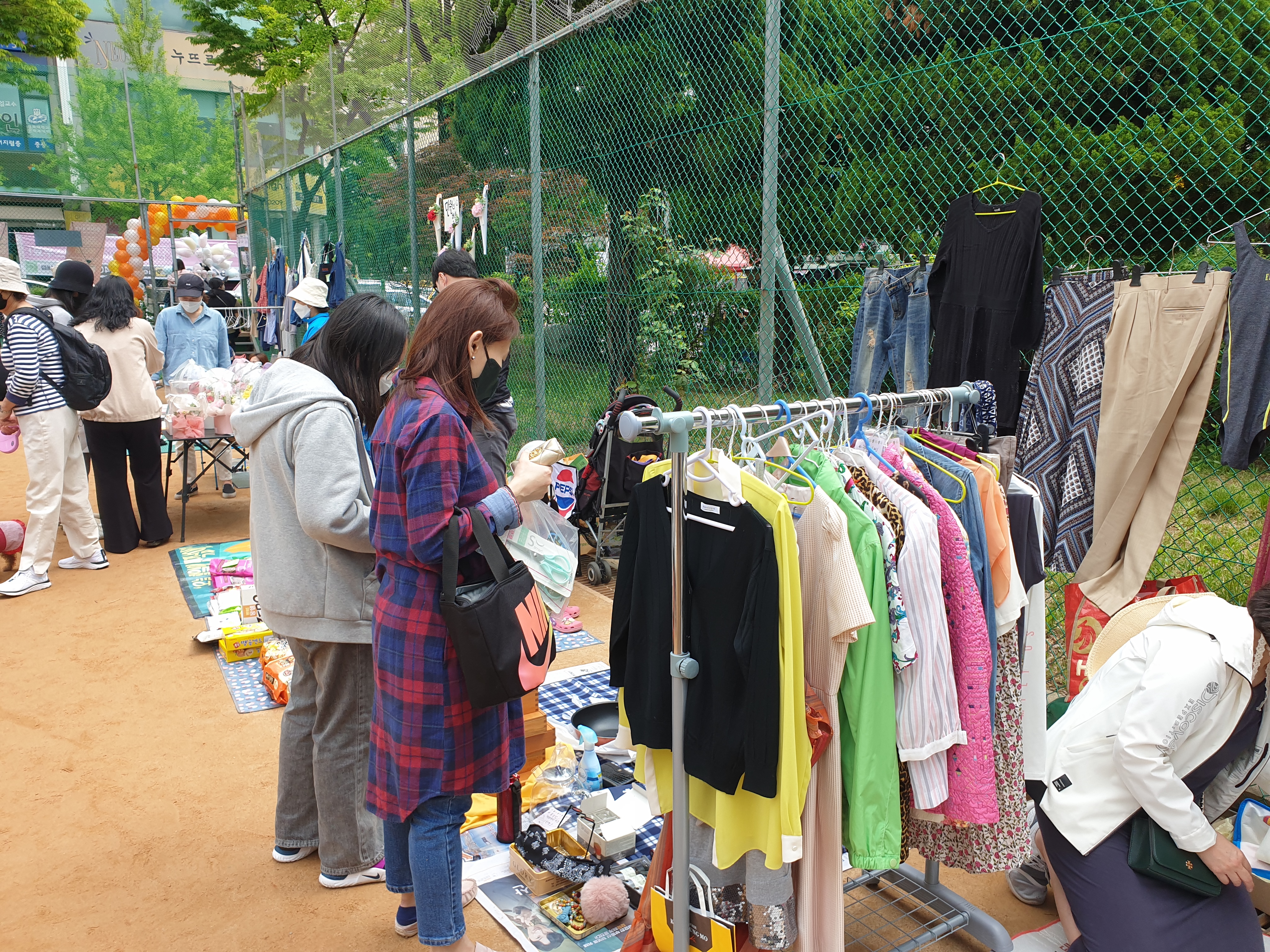 마켓이라 철망에 옷들이