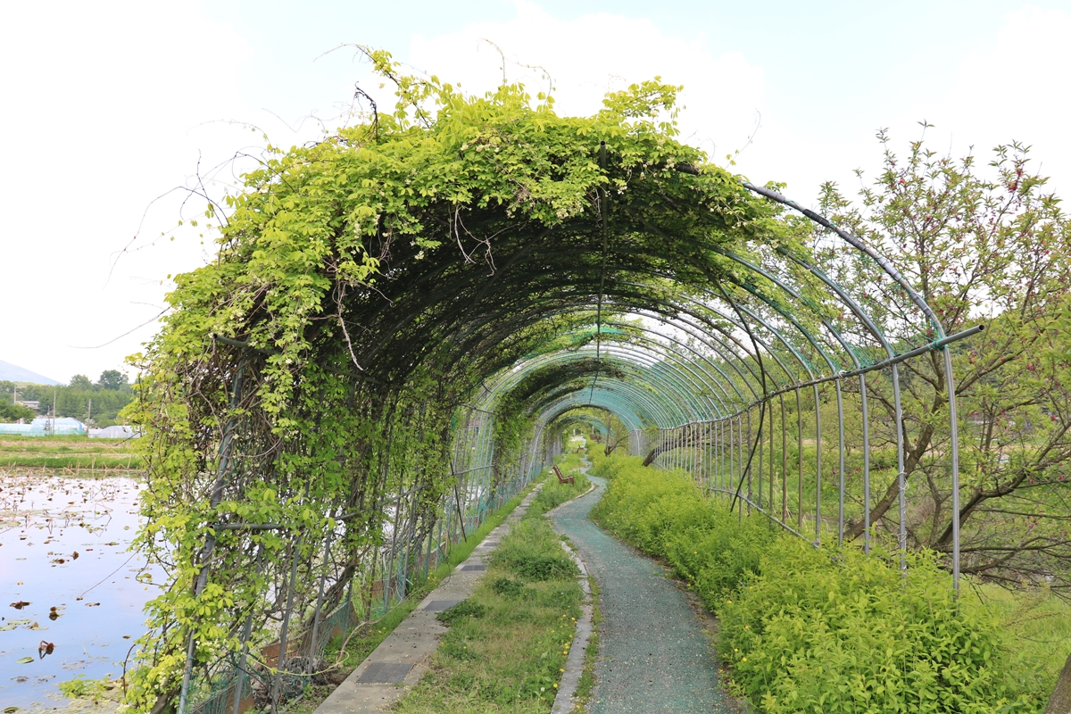 제가 갔을 때 내동마을 연꽃단지는 더 예쁘게 꾸미기 위해 마을 주민들이 한창 일하고 있었습니다. 여름이면 담쟁이넝쿨, 머루, 다래 등이 열리는 터널 산책로에 꽃을 심는다고 합니다. 앞으로 내동마을이 더 멋진 관광지가 될 듯합니다.