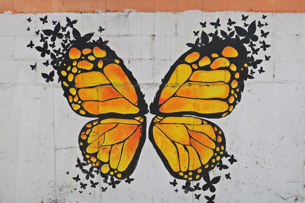 우전께 마을 포토존은 천사 날개와 나비 그림입니다. 이곳에서 사진을 찍으면 천사가 되기도 하고 나비가 될 수도 있습니다. 여기서 사진을 찍으면 SNS에 올릴 각이 나옵니다.