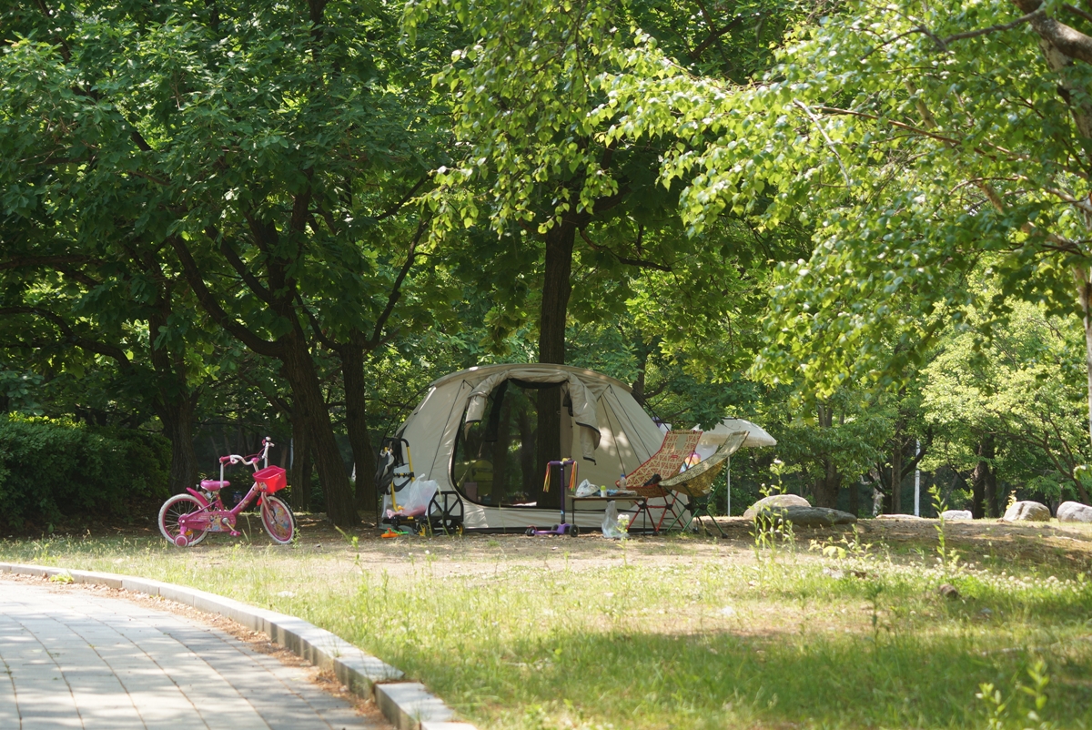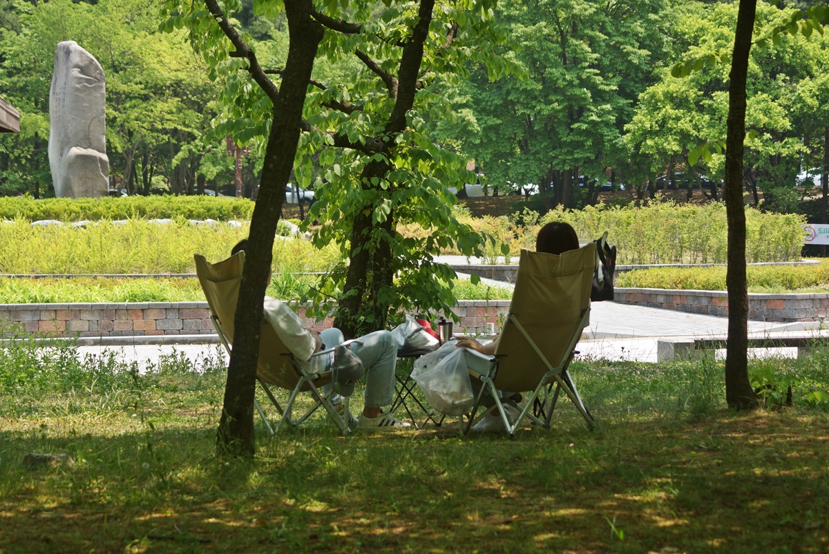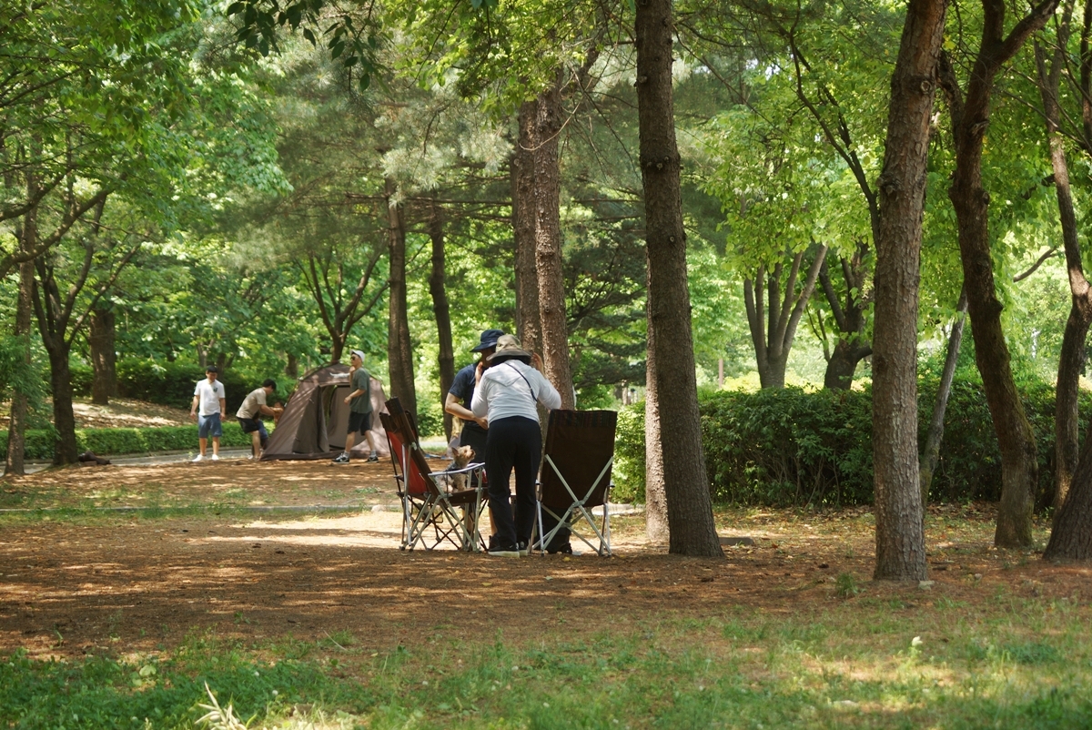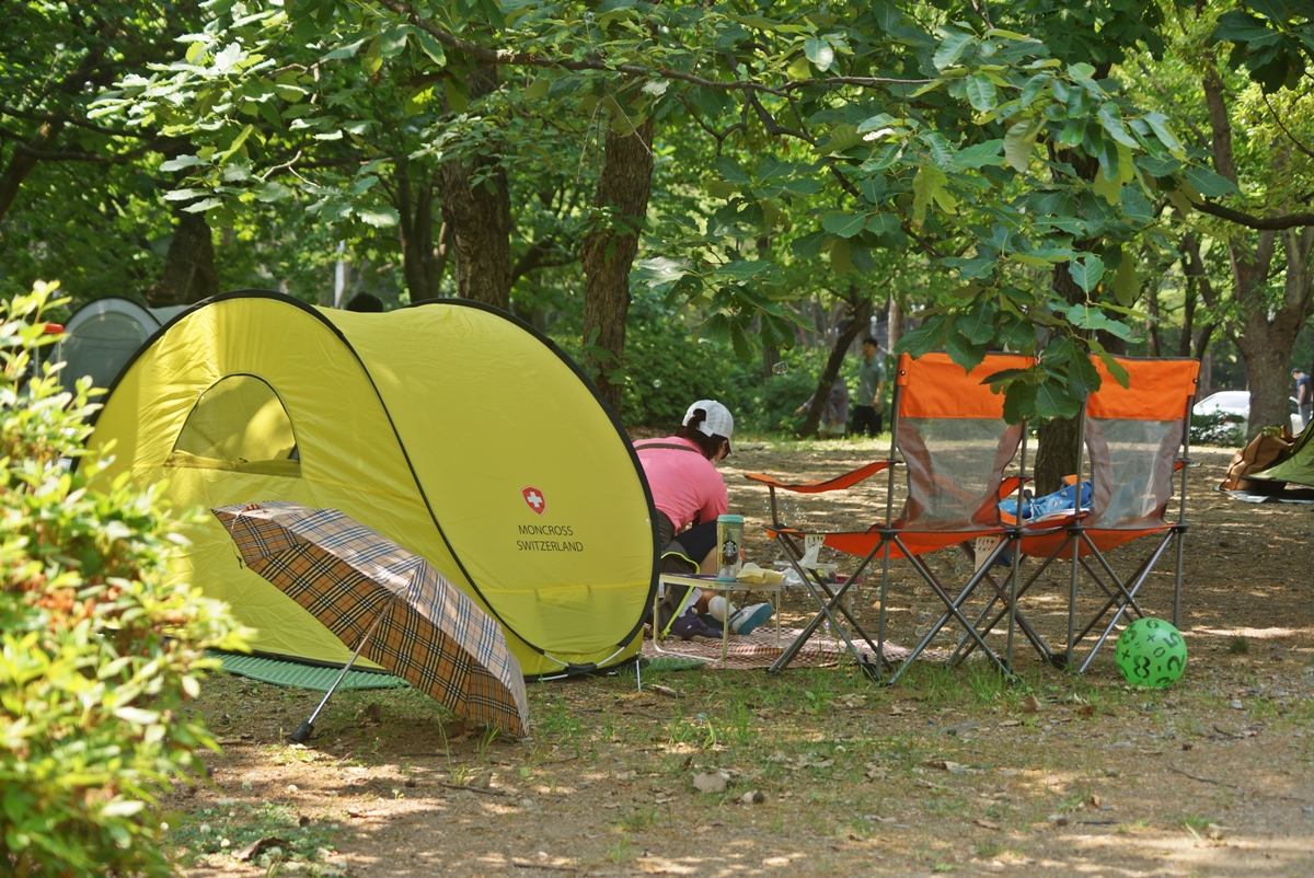 그늘막을 치고 쉬는 시민이