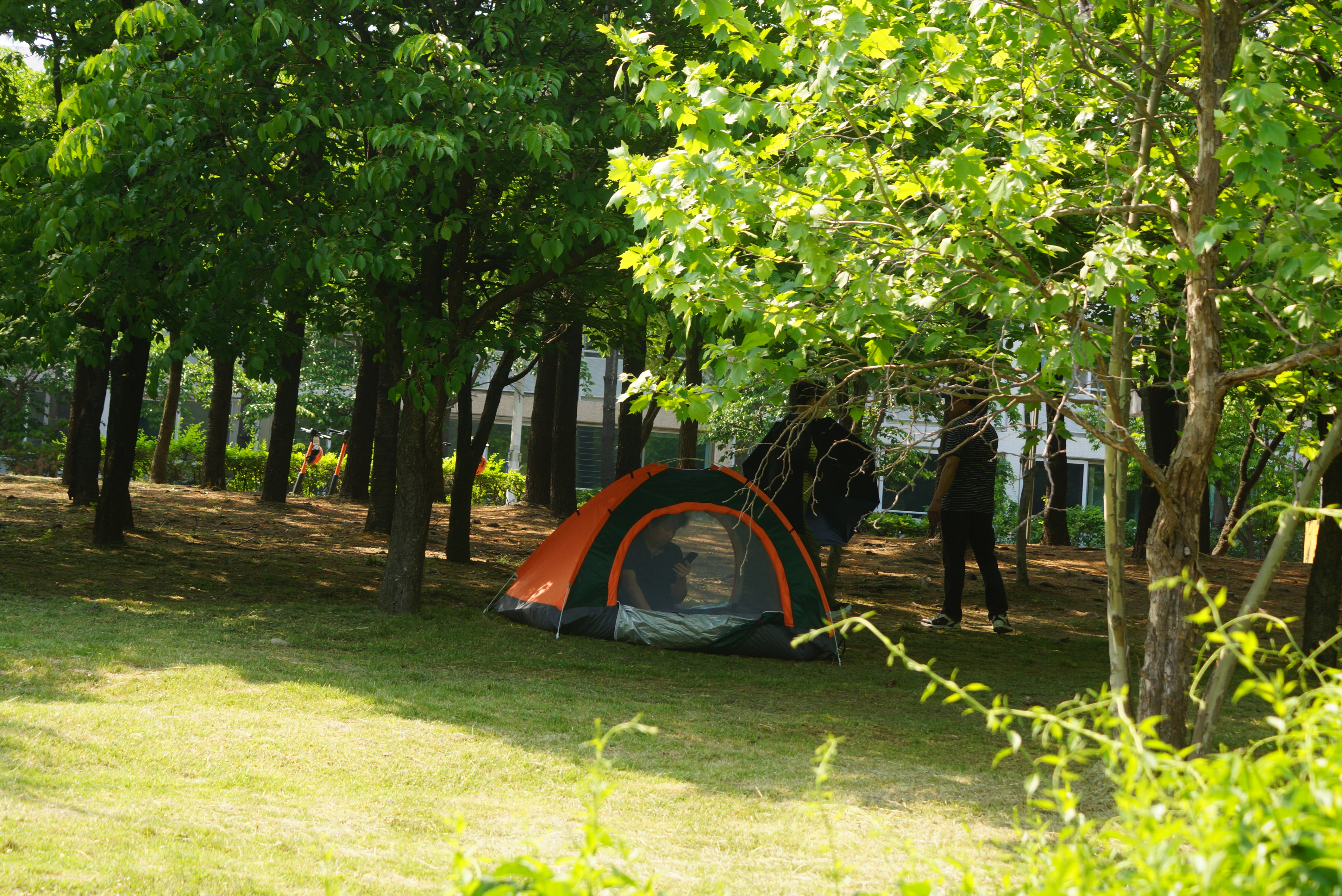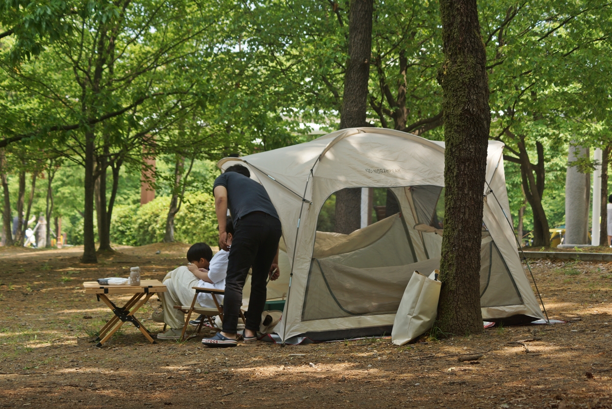 바야흐로 6월, 초여름입니다. 한낮 기온이 30도를 웃돌 만큼 날씨가 무척 뜨거워졌습니다. 이럴 때는 시원한 나무 그늘을 찾게 되는데요, 성남시 공원에서 그늘막을 설치해서 캠핑장 부럽지 않게