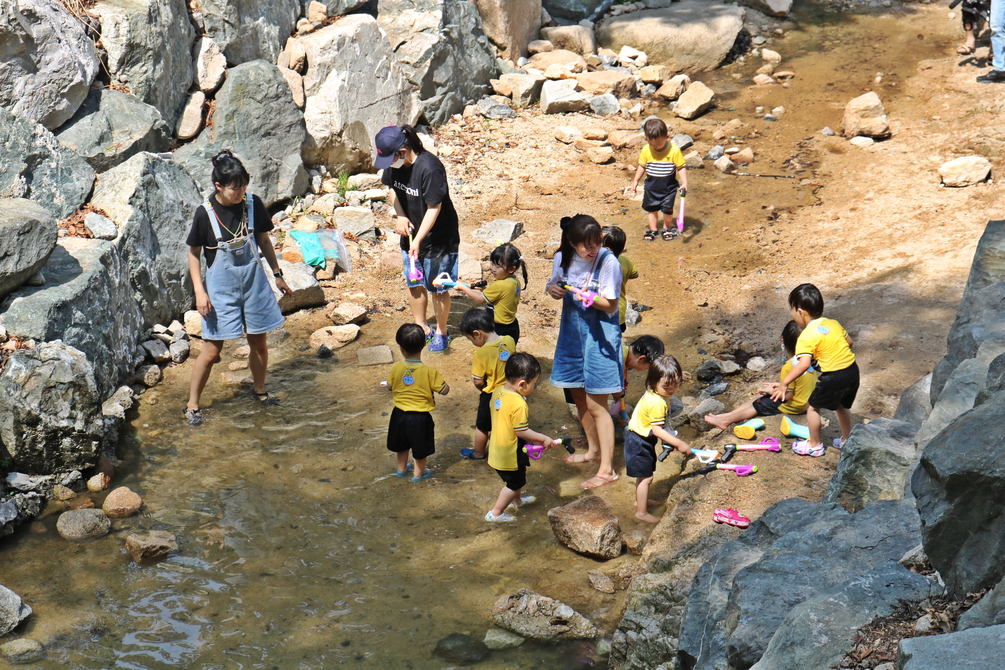 계곡 중간 왼쪽에 모래놀이장이 있습니다. 규모가 엄청나게 큽니다. 아이들은 이렇게 손으로 무언가를 만지며 노는 것을 좋아하잖아요. 모래놀이장에서 놀면 계곡이지만 바닷가에서 노는 듯한 느낌이 들겠는데요.