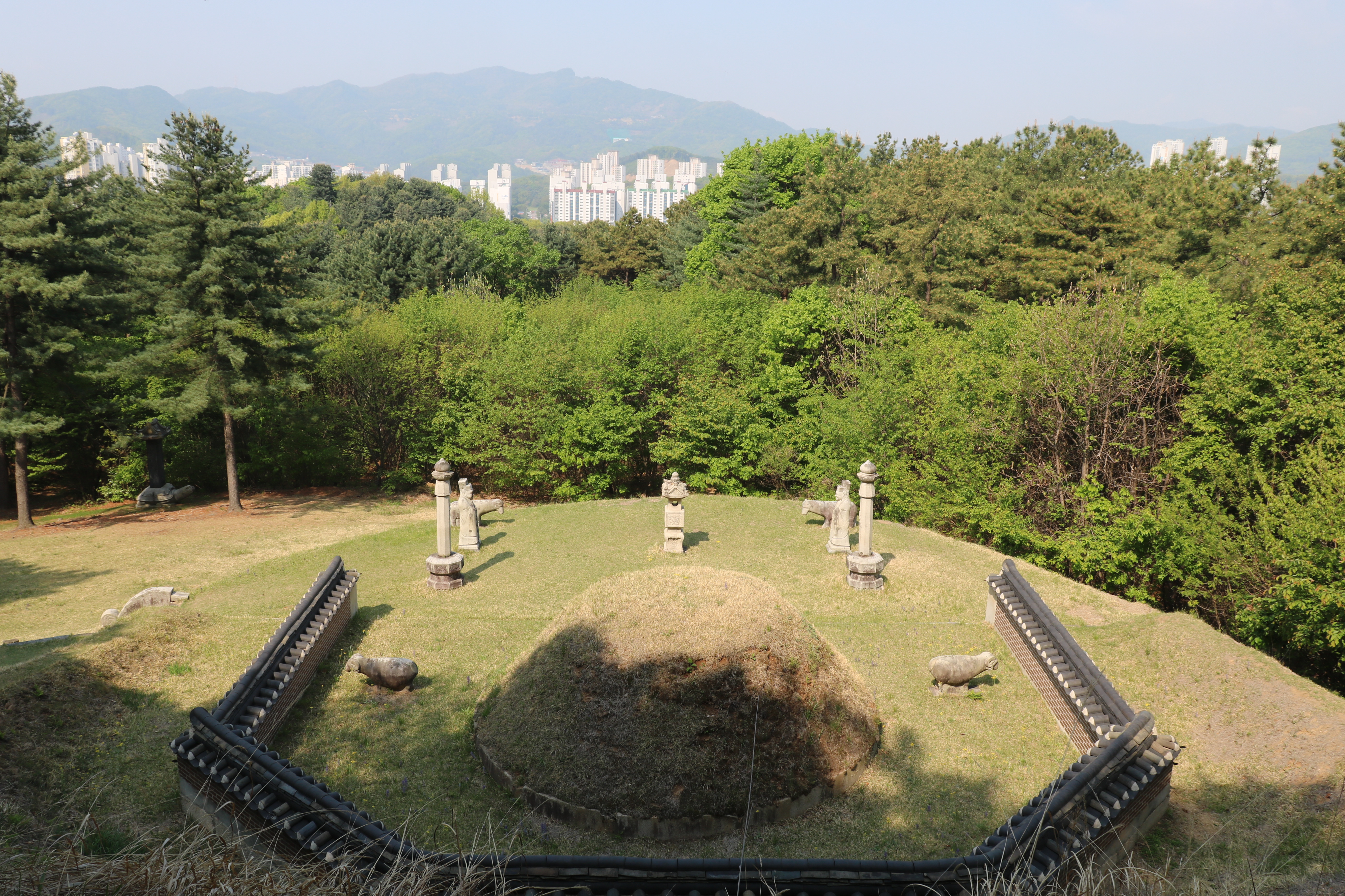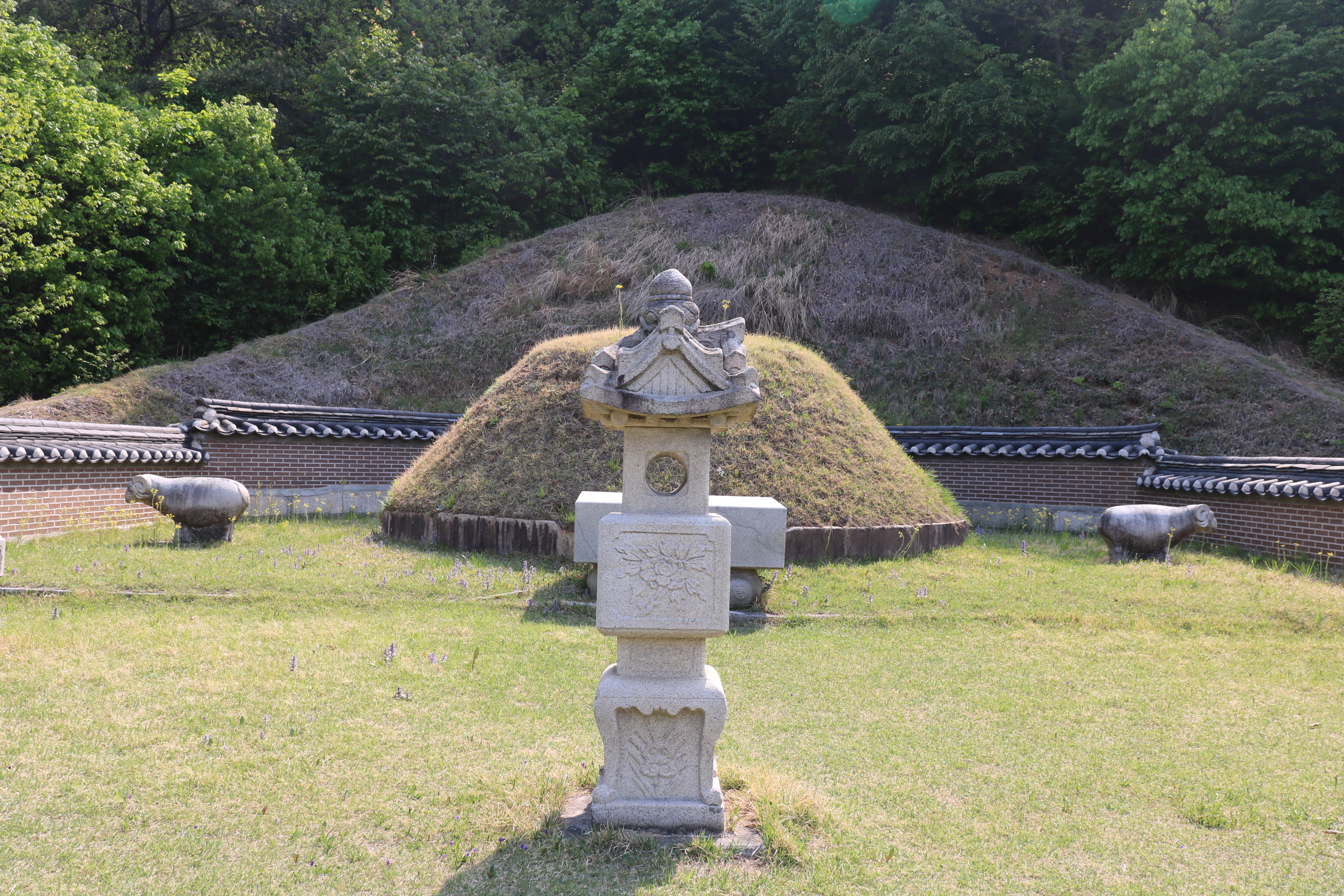 곡장 때문에 묘소가 아늑해 보입니다. 담장이 기와로 되어 있어서 정감이 있네요. 곡장까지 있는 것을 보니 왕족의 무덤으로서 갖출 것은 어느 정도 갖췄다는 생각이 듭니다. 전체적으로 왕릉보다 검소한 묘입니다.
