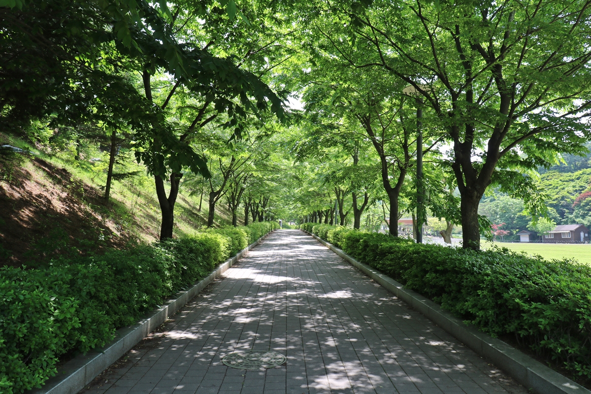 정문을 지나니 숲터널 같은 길이 나옵니다. 초여름이 더웠는데요, 이곳을 지나니 아주 시원합니다. 바람도 솔솔 불어서 기분 좋게 걸었습니다. 남양성모성지는 대부분 이렇게 초록으로 덮여 있습니다.