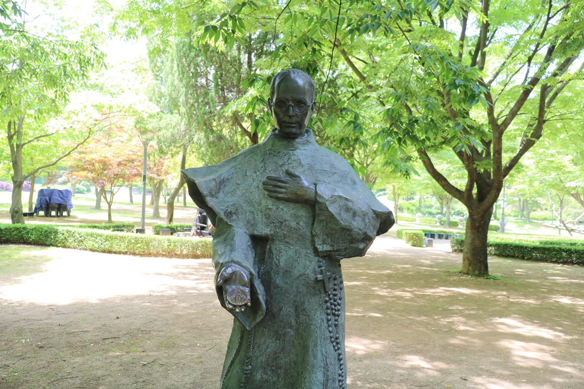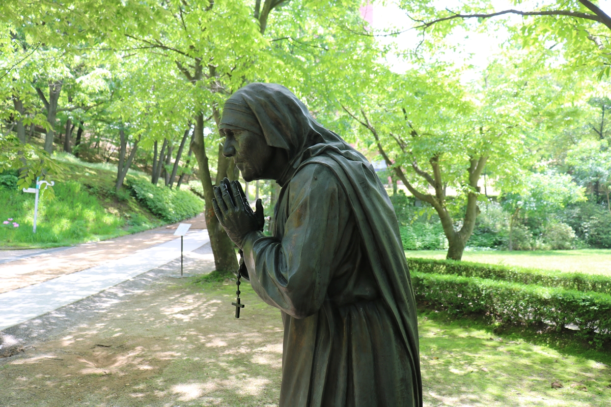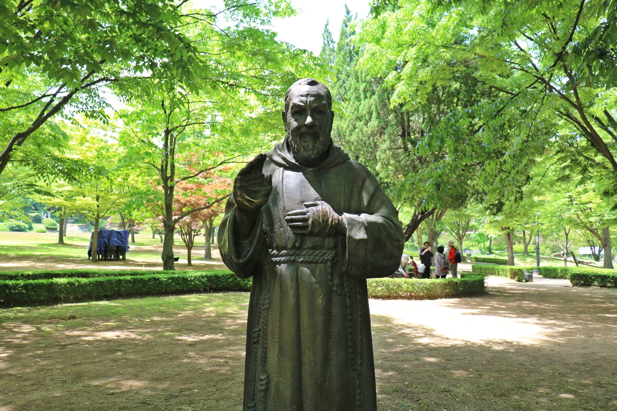 묵주의 길을 걸어 내려오면 우리 시대 위대한 사제이자 성인인 테레사 수녀, 오상의 비오 신부, 콜베 성인 동상 등을 만나게 됩니다.