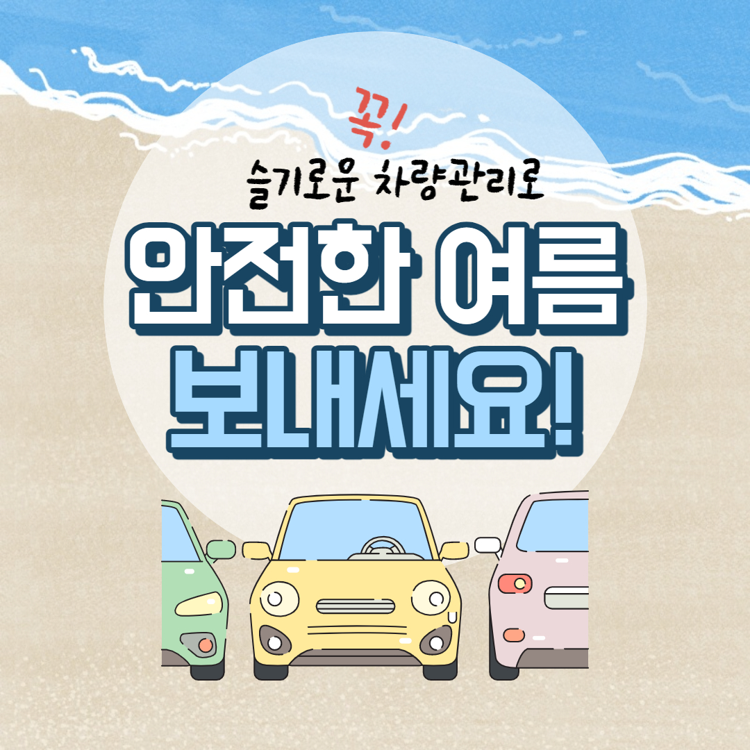 지금까지 여름철 차량 안전을 위한 슬기로운 차량 관리에 대해 소개해 드렸습니다. 본격적인 여름 휴가철에 기분이 들떠서 차량 안전에 신경 쓰지 않고 길을 나섰다가 큰 사고가 발생할 수 있습니다. 조금만 신경 쓰면 사고는 예방할 수 있습니다. 여름철 차량 관리로 안전하고 즐거운 여름 휴가 다녀오시기를 바랍니다.