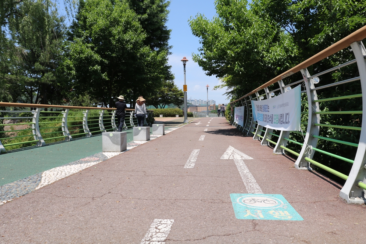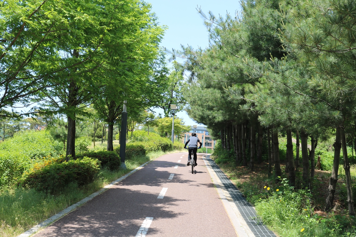 자전거길에는 자전거를 타고요. 자전거 전용이라 사람이 없어 안심하고 탈 수 있습니다.
