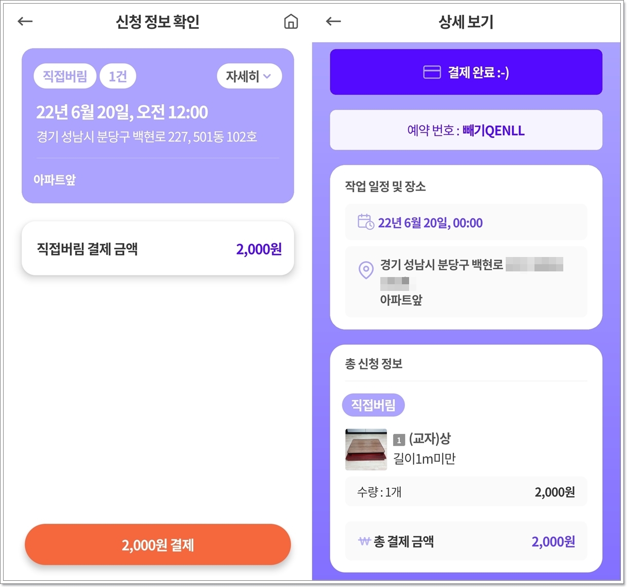 직접버림 서비스는 주민센터를