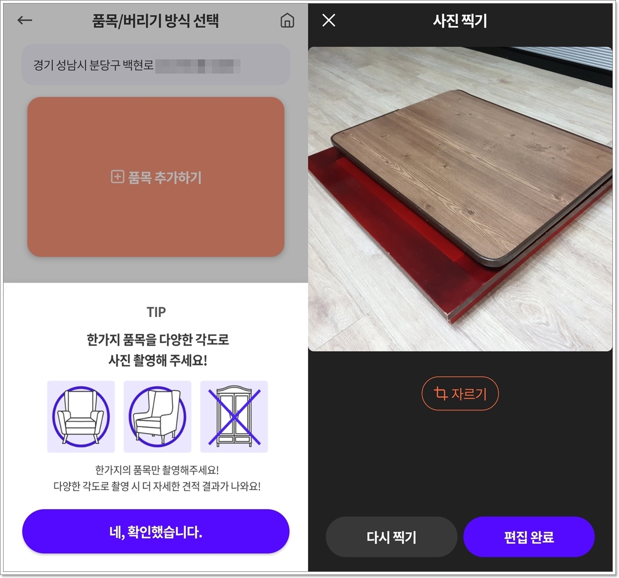 첫째, 버릴 물건 사진 찍기입니다.