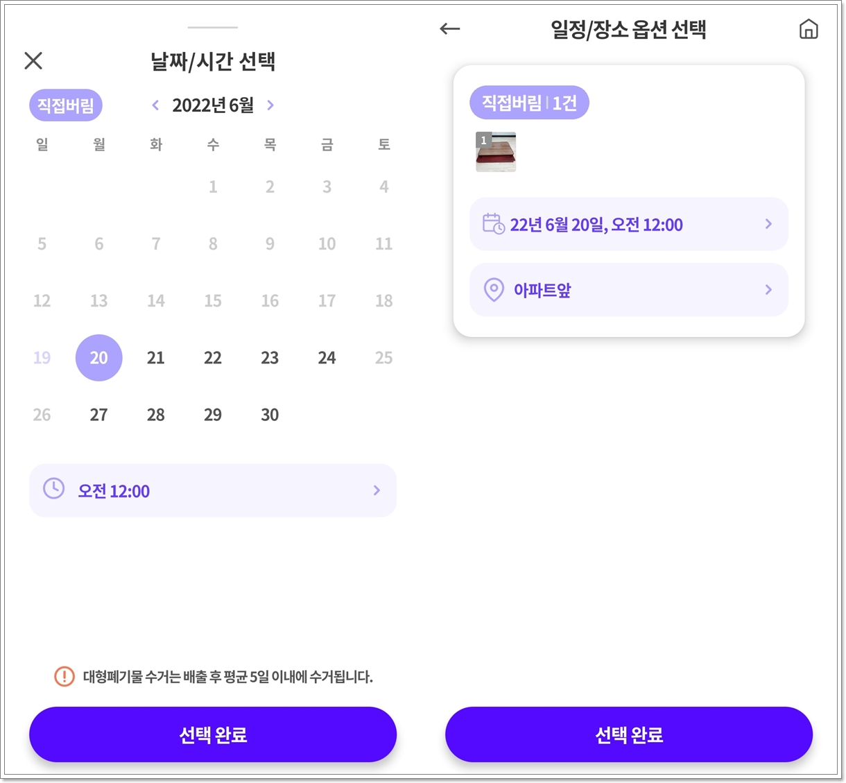다음은 수거 날짜 선택입니다.