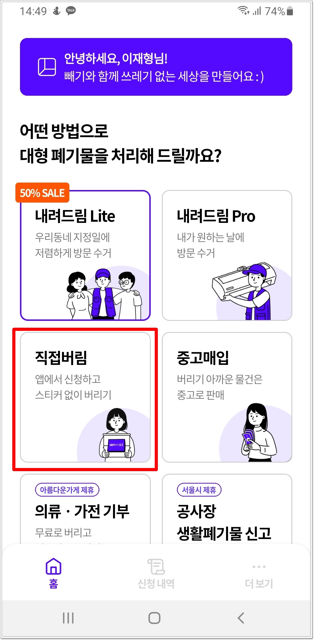 홈페이지에서 ‘수거신청’을