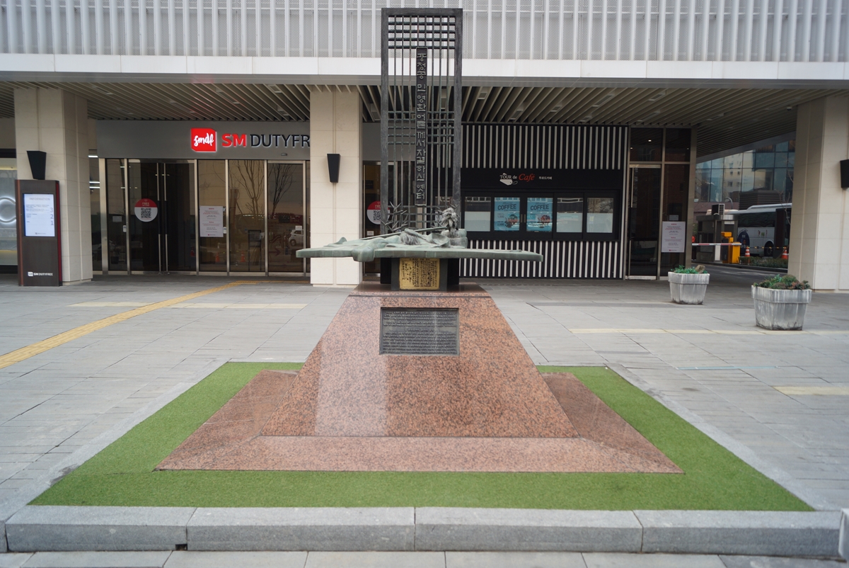 지난 3월에 서울 종로구에 갔다가 태화빌딩 앞에서 민영환 자결 터를 봤습니다. 이곳은 민영환의 자택이 있던 곳입니다. 칼로 자결했기 때문에 칼과 그의 주검을 형상화한 조각이 있습니다.