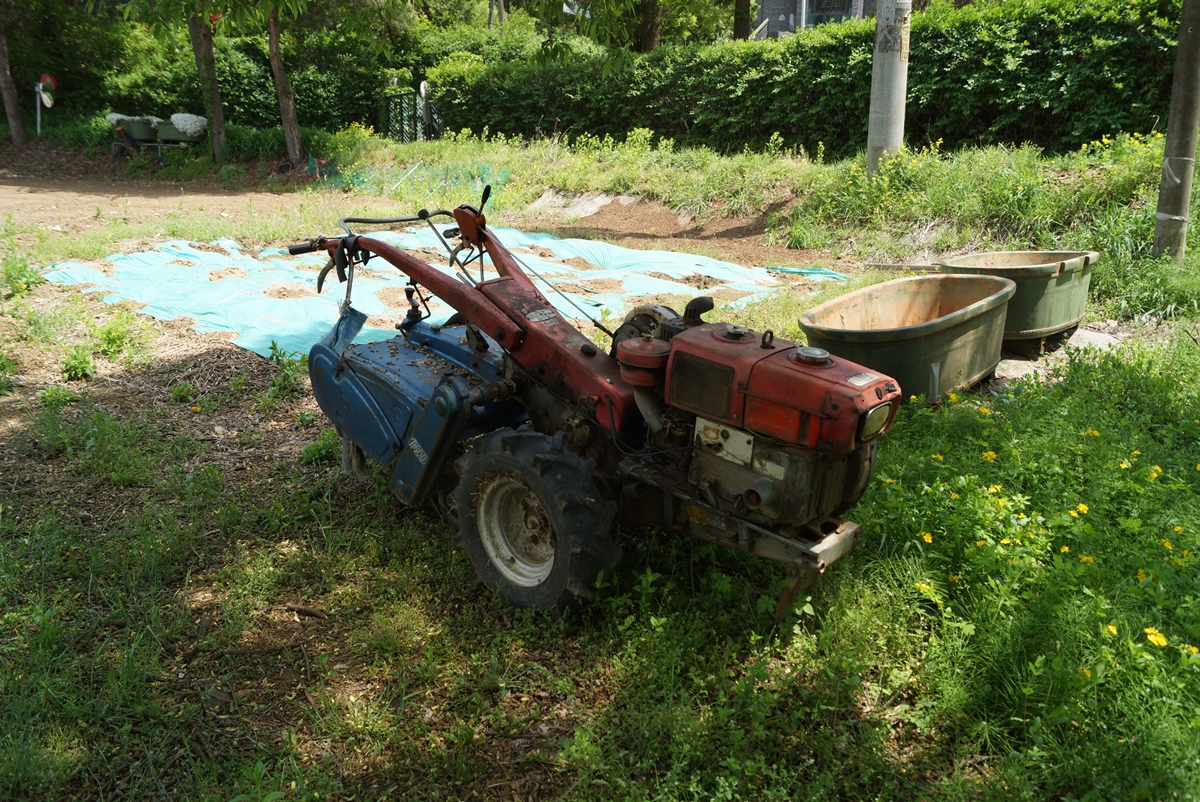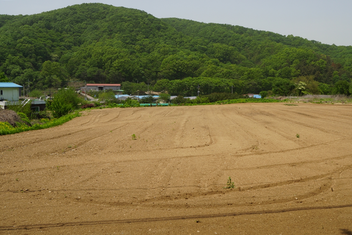 마가미술관 앞에 있는 밭입니다. 이곳에 무엇을 심을지 몰라도 씨를 뿌리고 여름 내내 땀 흘려 가꾸면 가을에 풍성한 결실을 얻을 수 있겠지요. 동산저수지에 물도 풍부하니 가뭄 걱정은 하지 않아도 되겠네요. 밭갈이를 마치고 트랙터가 그늘에서 쉬고 있습니다.