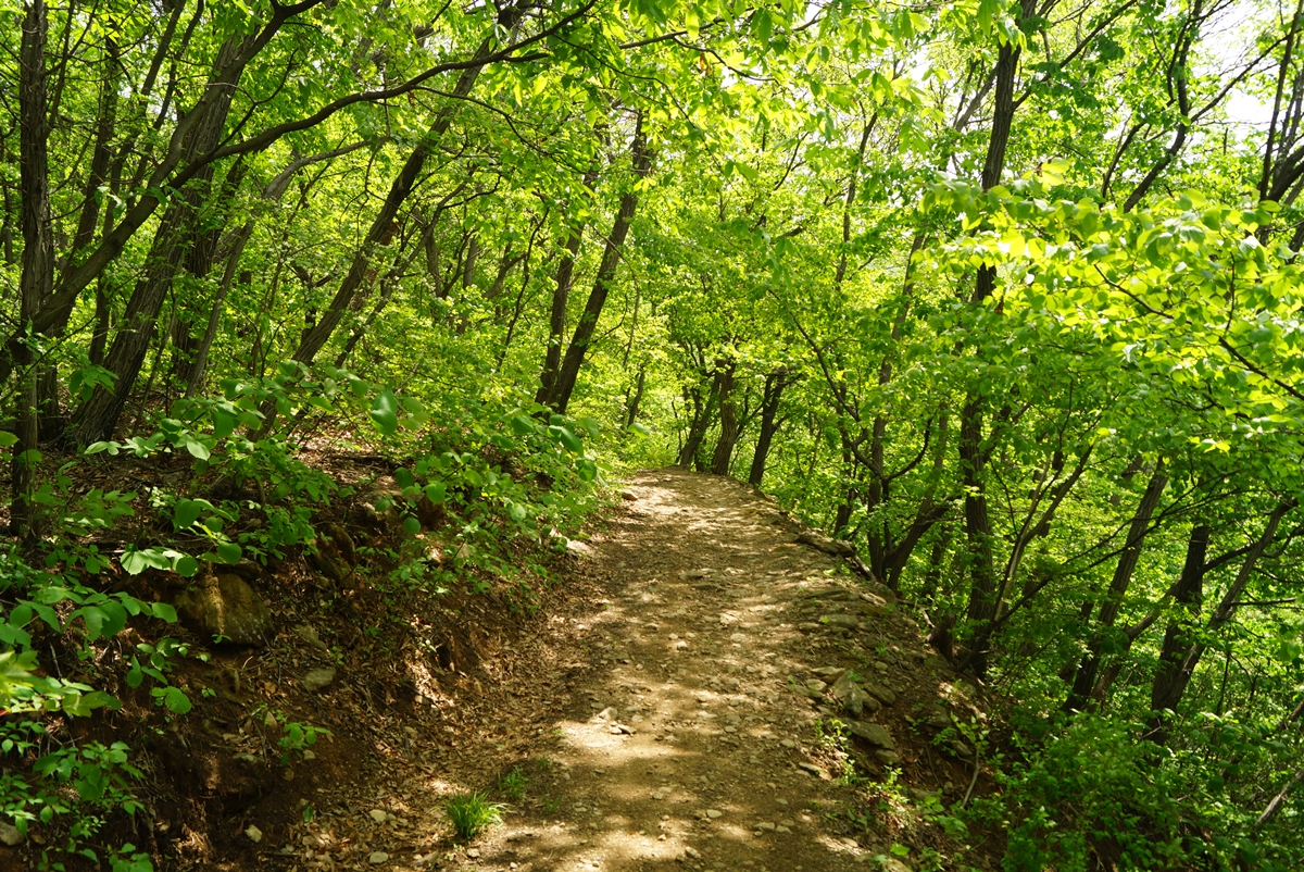 아내는 이런 길 걷는 걸 참 좋아합니다. 장맛비가 그치고 숲길 사이로 햇볕이 보입니다. 아내 기분도 좋아 보였습니다. 저 역시 아내 손을 잡고 마냥 걷고 싶은 길입니다.