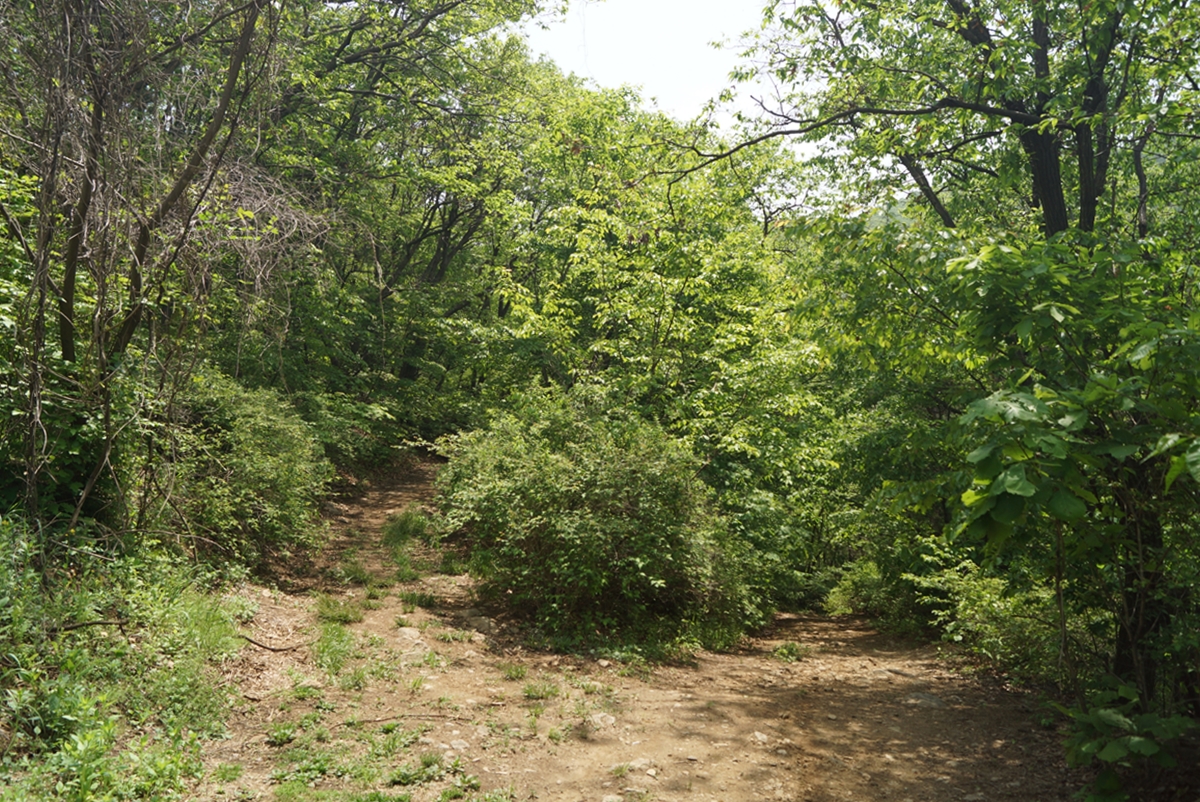 저수지에서 나와 동림교회로 내려가는 임도를 잠깐 걸어봤습니다. 길이 생각보다 넓고 좋습니다. 푸르름을 한껏 자랑하는 나무 사이를 걸으니 피톤치드가 나와 머리가 맑아지고 가슴이 뻥 뚫리는 기분입니다.