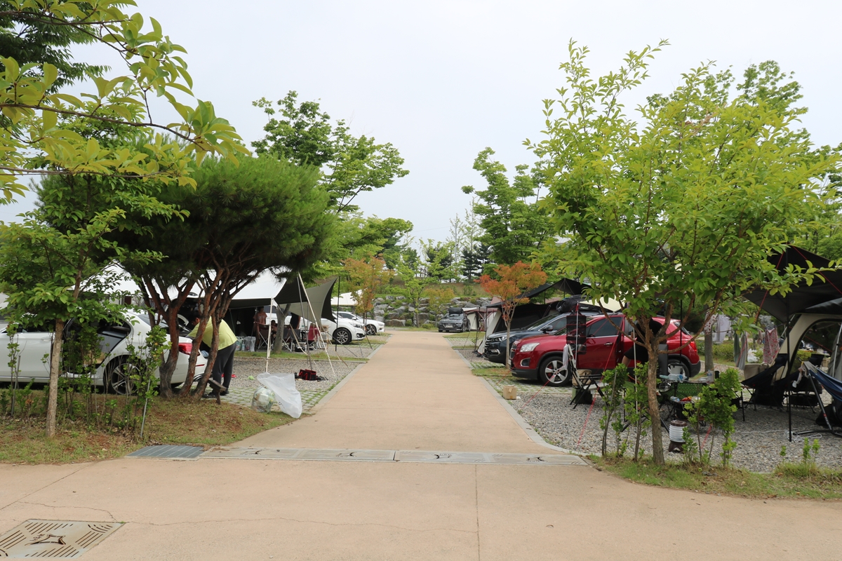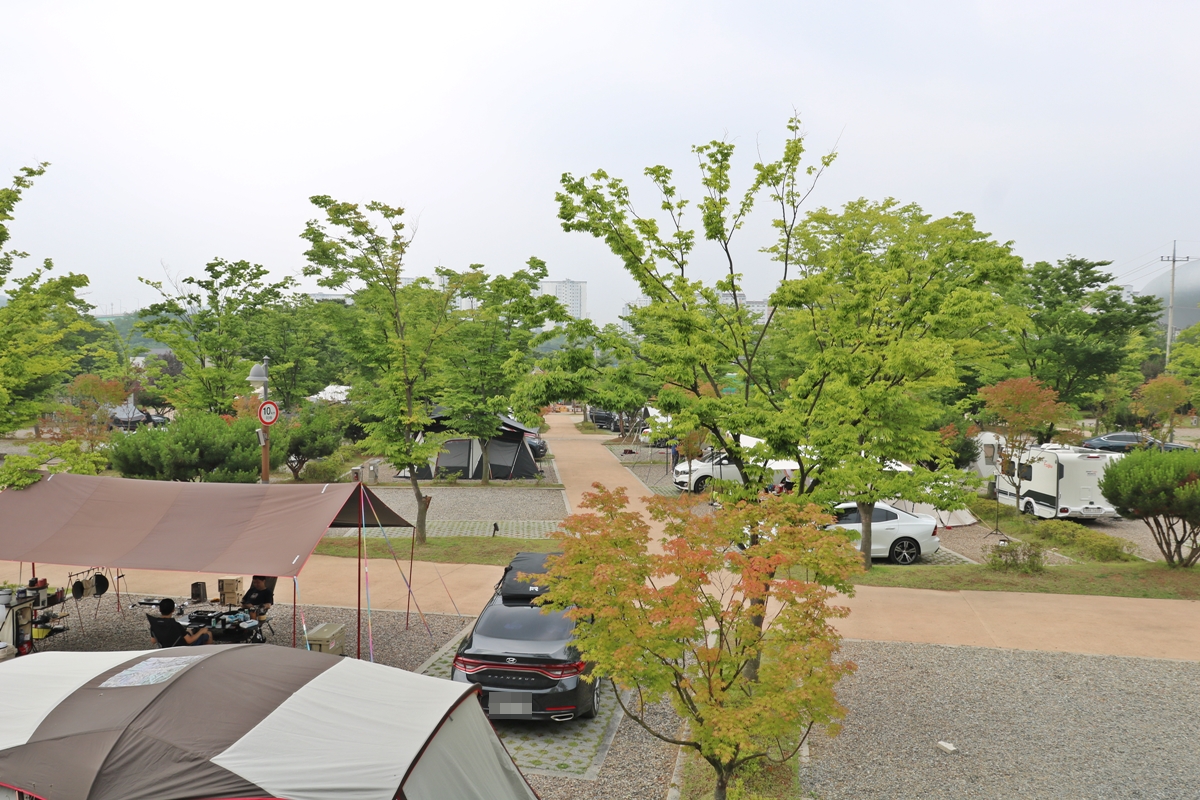 이제 전망대 쪽으로 가보겠습니다. 야영장 위에 전망대가 있는데요, 이곳에서 보니 야영장이 한눈에 내려다보입니다. 제가 갔던 날이 토요일 오후였는데요, 캠핑장에 빈 곳을 찾아볼 수 없을 정도로 많은 가족이 캠핑을 왔습니다.