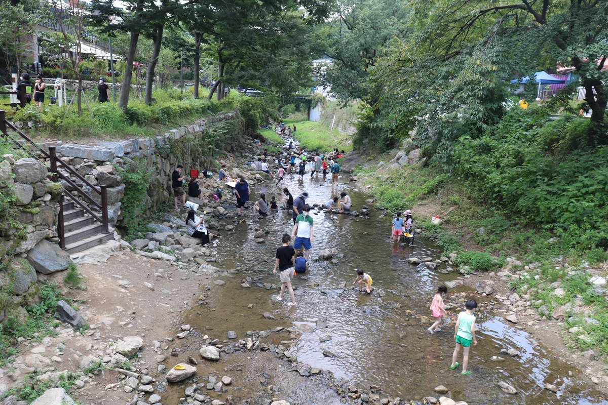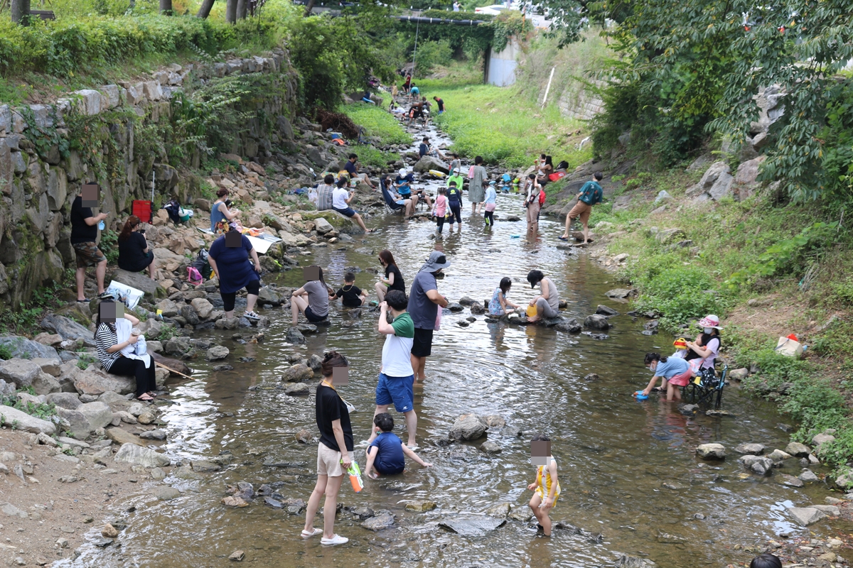 많은 시민이 계곡 옆에 돗자리를 폈습니다. 계곡에서 놀다가 올라와 그늘에서 잠시 쉬다가 또 물에서 놀고요. 아직 코로나19로 조심스럽긴 하지만 이렇게나마 여름 더위를 식힐 수 있어 다행입니다.