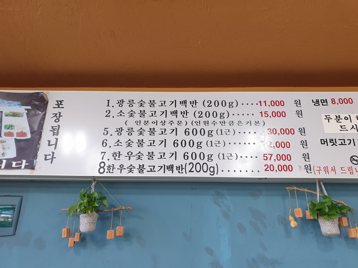 메뉴는 광릉불고기백반 등