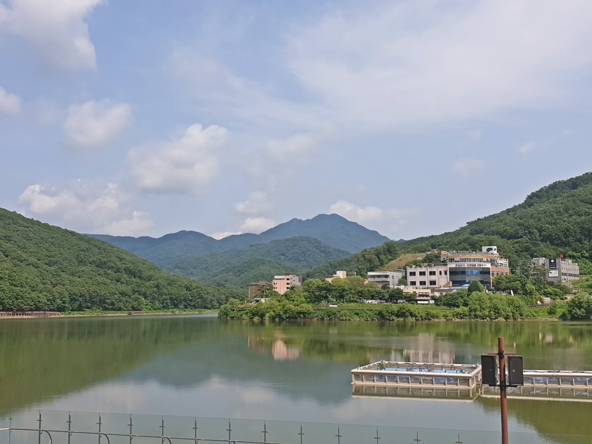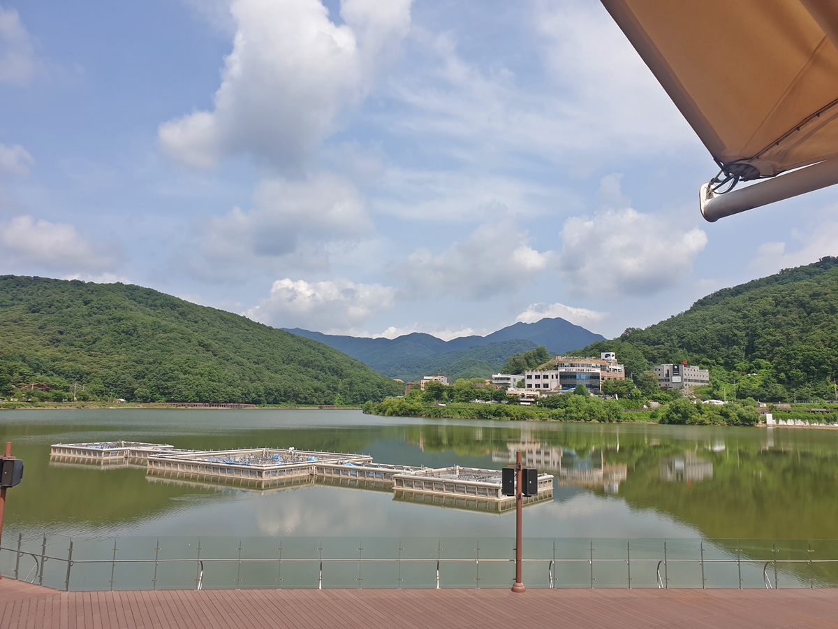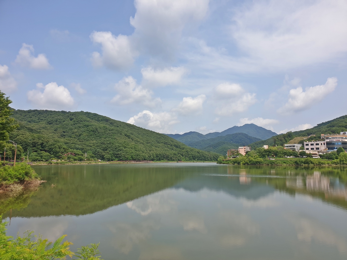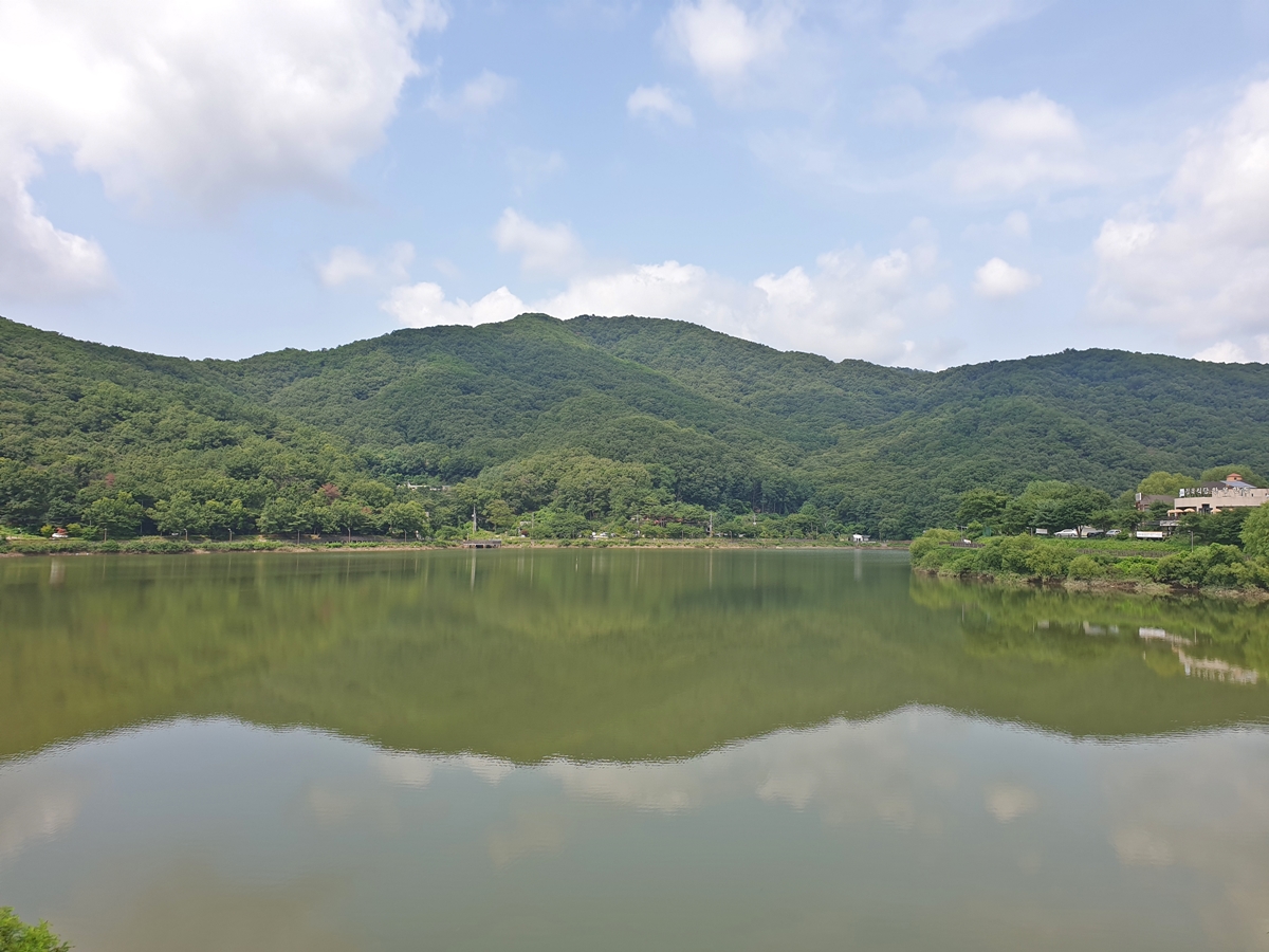아내와 잠시 수변 산책로를 걸었습니다. 오른쪽으로 보이는 호수 뷰가 너무 멋져 더운 줄도 모르고 걸었습니다. 가을이면 단풍으로 더 아름다운 풍경을 보여주죠.