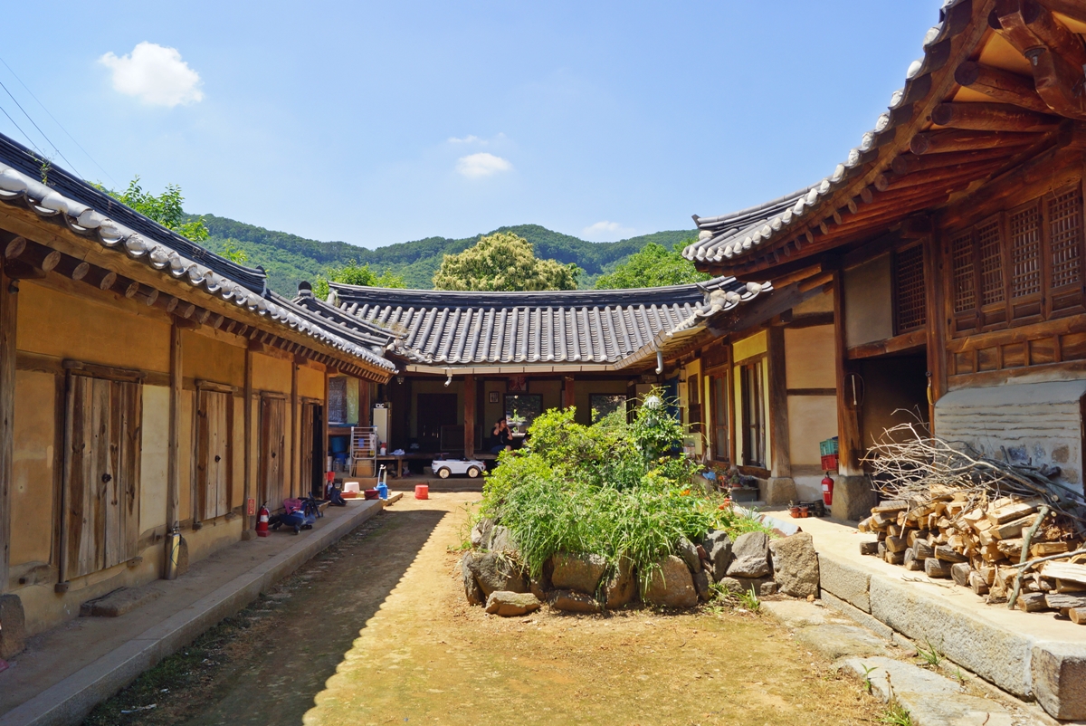 안으로 들어가 보니 길 다란 마당이 있고 가운데 안채, 좌측은 행랑채, 우측은 안방과 사랑채로 구성돼 있습니다. 마당에는 돌로 경계를 만든 화분이 있습니다. 문화재로 지정됐지만, 사람이 살고 있어서 그런지 온기가 느껴지는 듯했습니다.