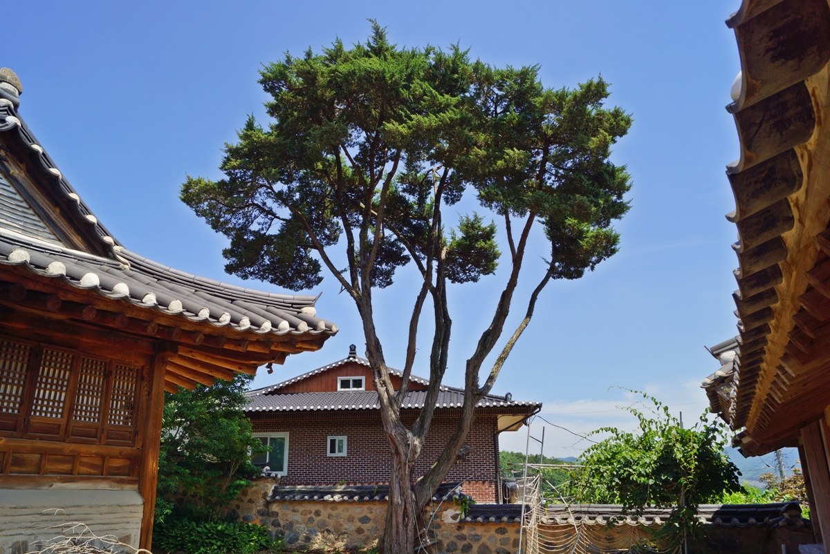 고택을 한 바퀴 구경하고 나오다 보니 오래된 향나무가 사랑채 앞에 보였습니다. 향나무는 수령이 적혀있지 않았지만 나무 높이나 둘레로 보아 수백 년이 넘은 듯 보였습니다. 이 향나무가 이주국 장군 고택의 역사를 그대로 지켜봤을 겁니다.