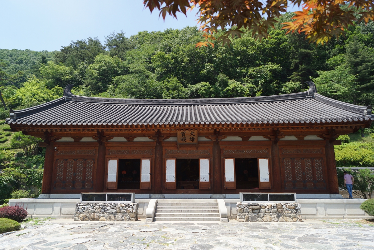 여긴 어느 절에 있는 대웅보전(대웅전, 큰 법당)입니다. 그런데 특이한 점이 있습니다. 보통 사찰에는 단청을 칠하는데 여긴 목재 그대로네요. 단청은 보기에도 아름답지만, 비바람과 병충해로부터 목재를 보호하기 위해 칠하는 겁니다. 와우정사 대웅보전은 단청을 칠하지 않았습니다. 그래도 비바람에 끄떡없나 봅니다.