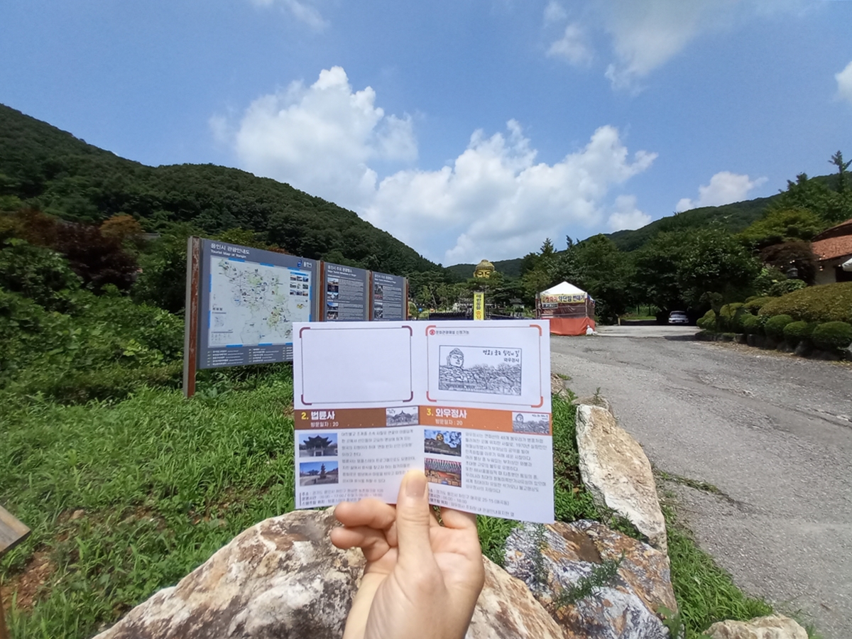 와우정사 주차장에 차를 세우고 걸어가다 보면 입구에 용인 관광 안내판이 나옵니다. 그리고 그 앞에 스탬프를 찍는 함이 있습니다. 용인시의 명소를 품은 힐링의 길 중 5곳의 스탬프 관광지가 있는데요, 와우정사는 그중의 한 곳입니다. 나머지 네 곳은 용인농촌테마파크, 법륜사, 석포숲공원, 용인대장금파크입니다.