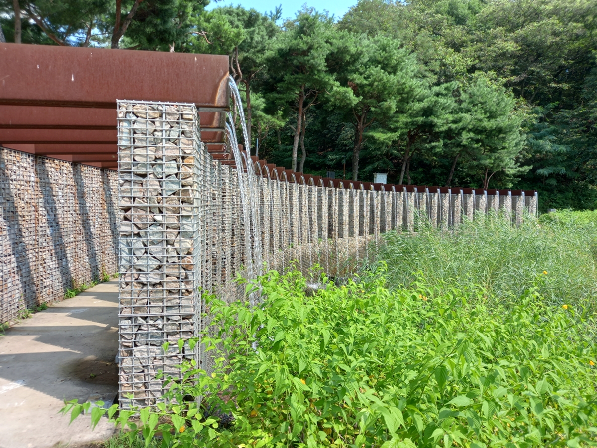 주차장에 차를 세우고 동탄호수공원으로 가는데 창포원에서 시원한 물줄기가 쏟아집니다. 창포원은 색과 소리가 있는 기억의 정원인데요, 꽃창포, 노랑꽃창포, 부들, 속새, 무늬제비꽃, 흰갈플, 벽천 등이 있어 사계절 아름다움을 선사하고 있습니다.