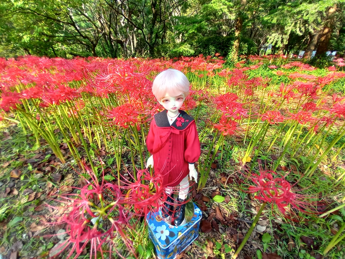 그런데 꽃무릇 앞에 인형을 놓고