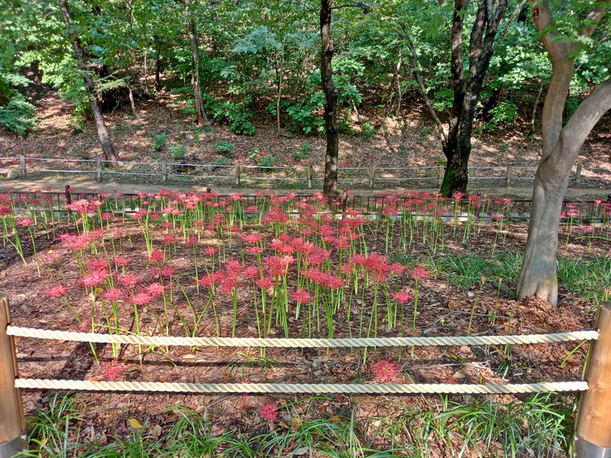 꽃무릇이 나무 사이로 반짝반짝