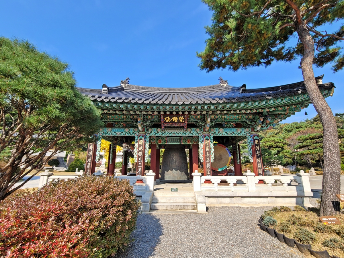 봉녕사 범종각에는 에밀레종을 닮은 큰 종이 걸려 있습니다. 다른 절에는 보통 종만 있는데요, 봉녕사는 불교 의식에 사용되는 4가지 법구인 종, 목어, 운판, 법고가 있습니다. 이곳에서 매일 새벽 수원 시민을 깨우는 종소리가 쩌렁쩌렁하게 울립니다.