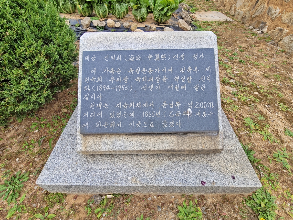 서하리 마을에서 신익희 생가로 들어가려니 입구에 해공로 비석과 동상, 어록이 있습니다. 도로 이름이 신익희 선생 호를 딴 해공로(海公路)인데요, 신익희 선생이 12살 되던 해 서하리 마을에서 30여 리 떨어져 있는 남산초등학교에 입학하면서 이 길을 따라 매일 학교에 다녀 도로 이름을 해공로라 지었다는 설명이 있습니다.