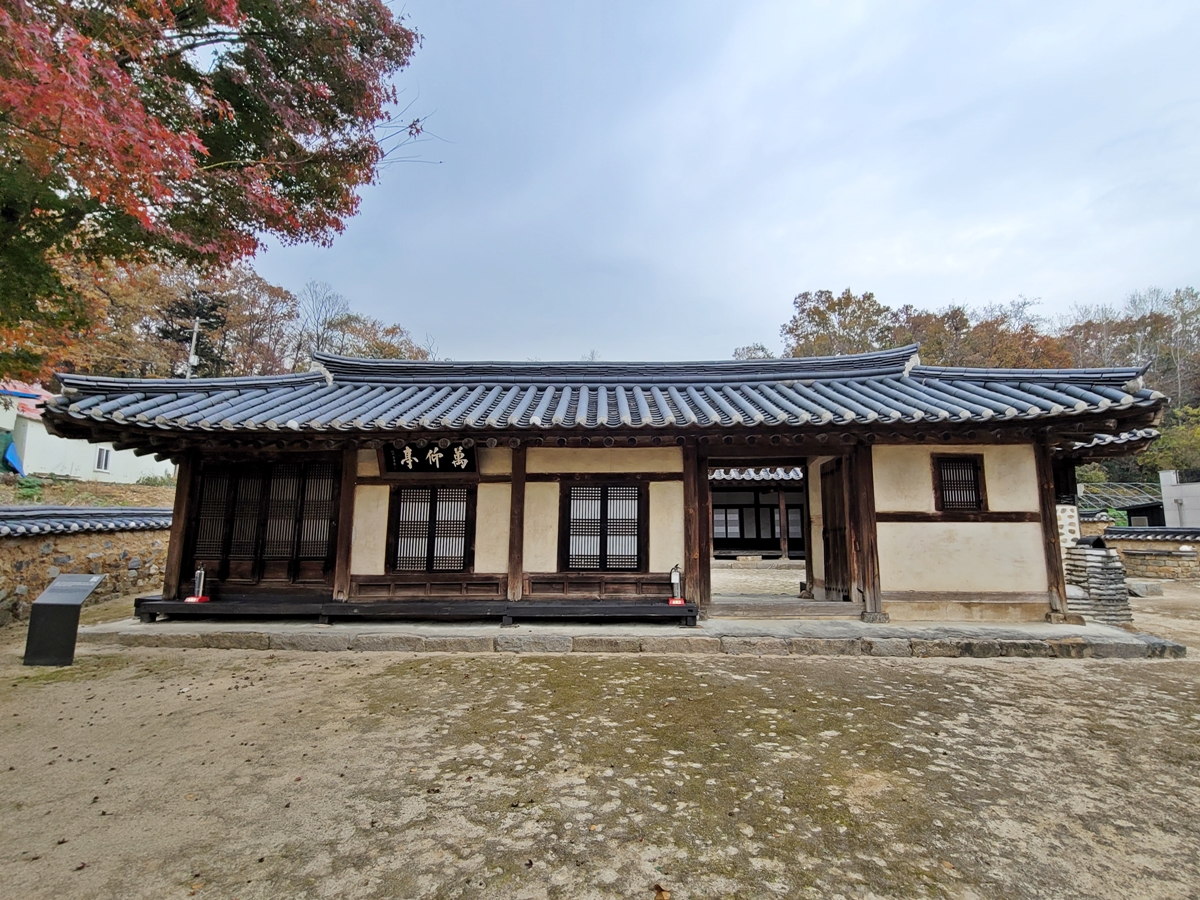 생가는 안채와 바깥채로 구성돼 있습니다. 안채와 바깥채 모두 목조 기와집으로 우리나라 전통 한옥 모습을 간직하고 있습니다. 대문을 들어서면 바깥채인 만앙정(萬仰亭)이 나옵니다. 바깥채는 ‘ㄱ’자형으로 가운데에 대문을 두고 좌·우측에 두 칸의 사랑방을 두었습니다. 사랑방은 손님이 오면 묵을 수 있는 방입니다.