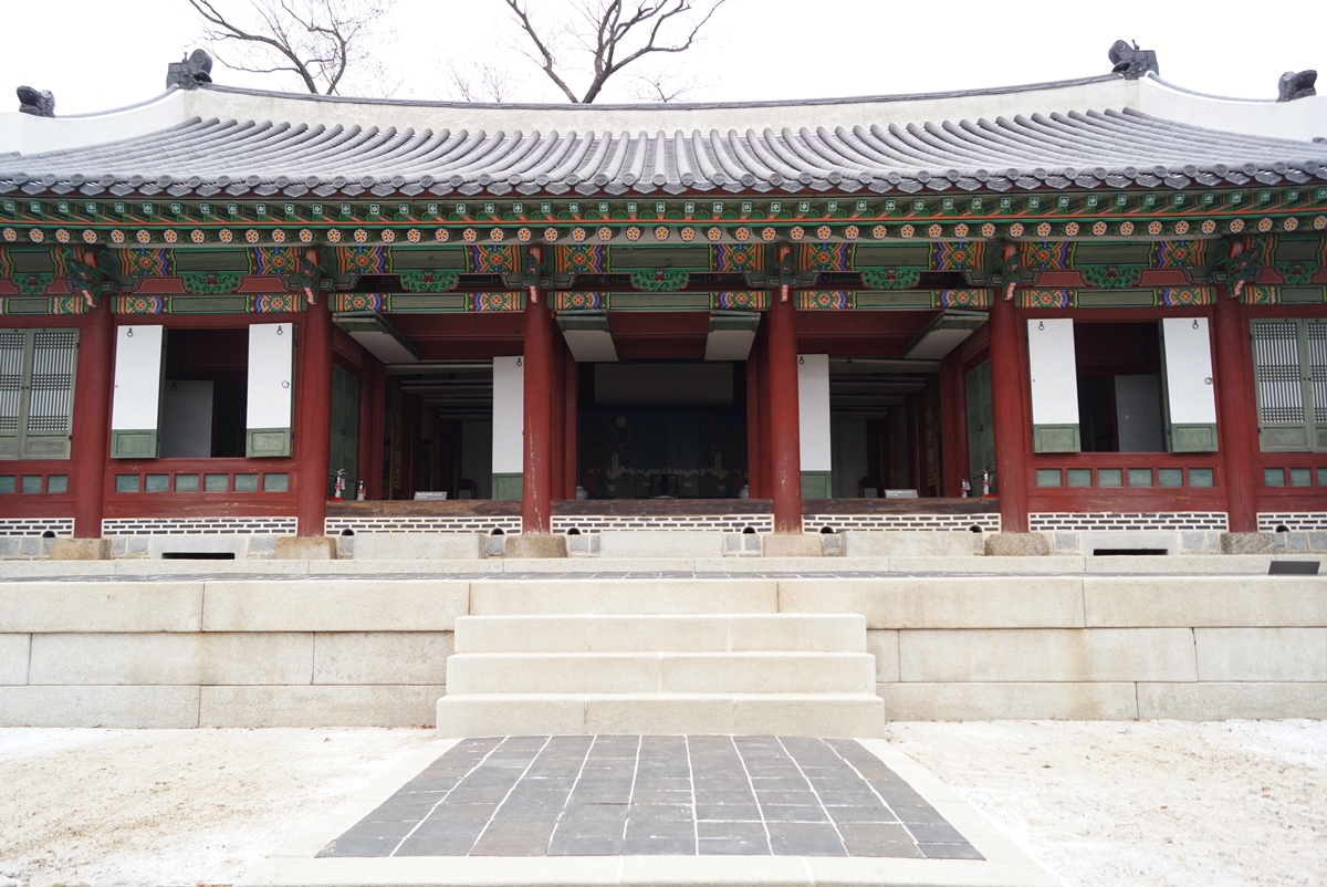 외행전을 지나면 내행전이 나옵니다. 내행전은 왕이 잠을 자고 생활하던 공간입니다. 인조 2년(1624)에 처음 지어졌으며 정면 7칸, 측면 4칸으로 전체가 28칸(167m²)입니다. 요즘으로 말하면 약 50평 아파트 크기입니다. 가운데 3칸은 대청으로 되어 있고 좌우 2칸씩은 온돌방과 마루입니다. 왕이 거처하는 곳이라 담으로 둘러서 쌓아 부속시설을 담밖으로 설치한 폐쇄적인 구조입니다. 현재 내행전은 2002년 중건되었습니다.