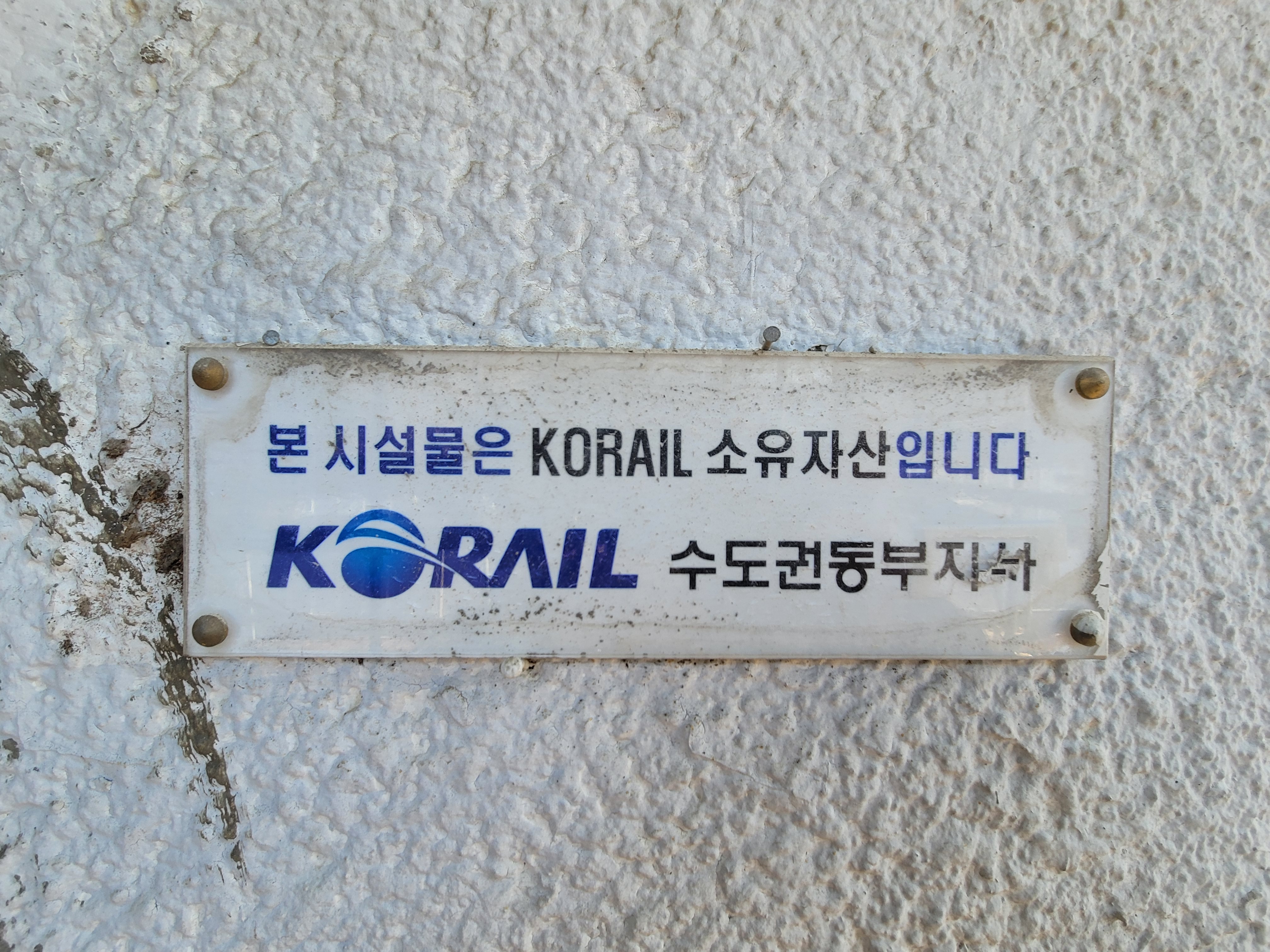 공사 관계자 양해를 구한 뒤 구둔역 안으로 들어가봤습니다. 출입구에 대한민국 근대문화유산 동판이 있습니다. 구둔역은 등록문화재 제296호입니다. 그리고 그 옆으로 한국철도(코레일 수도권 동부지사)의 소유 자산임임 표시하고 있습니다.
