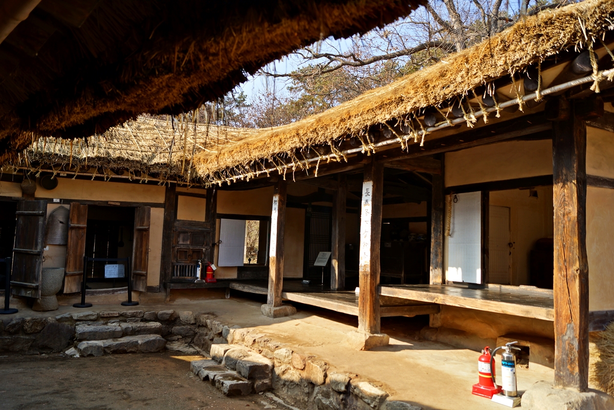 안채는 10칸 규모의 초가집인데요, 안방과 대청, 건넌방이 일렬도 배치된 형태입니다. 안방 옆에 1칸씩 부엌과 광이 있는데요, 이 정도 규모라면 꽤 잘 사는 집안이었을 겁니다. 지금으로 말하면 중산층 그 이상의 부잣집이었죠.
