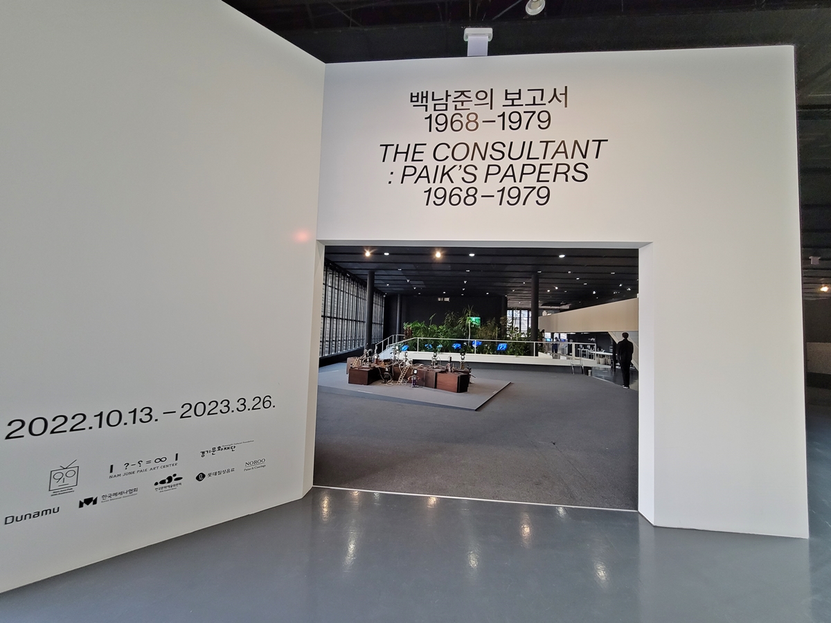요즘 백남준아트센터 전시회는 두 가지입니다. 첫째는 1층(제1전시실)에서 열리는 <백남준의 보고서 1968~1979>로 2022년 10월 23일부터 2023년 3월 26일까지 열립니다. 둘째는 2층(제2전시실)에서 열리는 <바로크 백남준>인데요, 2022년 7월 20일부터 2023년 1월 24일까지 열립니다. 한 번에 두 개의 전시회를 볼 수 있습니다. 전시 동선은 1층부터 2층 순서로 보시면 됩니다. 그럼 1층부터 가볼까요.