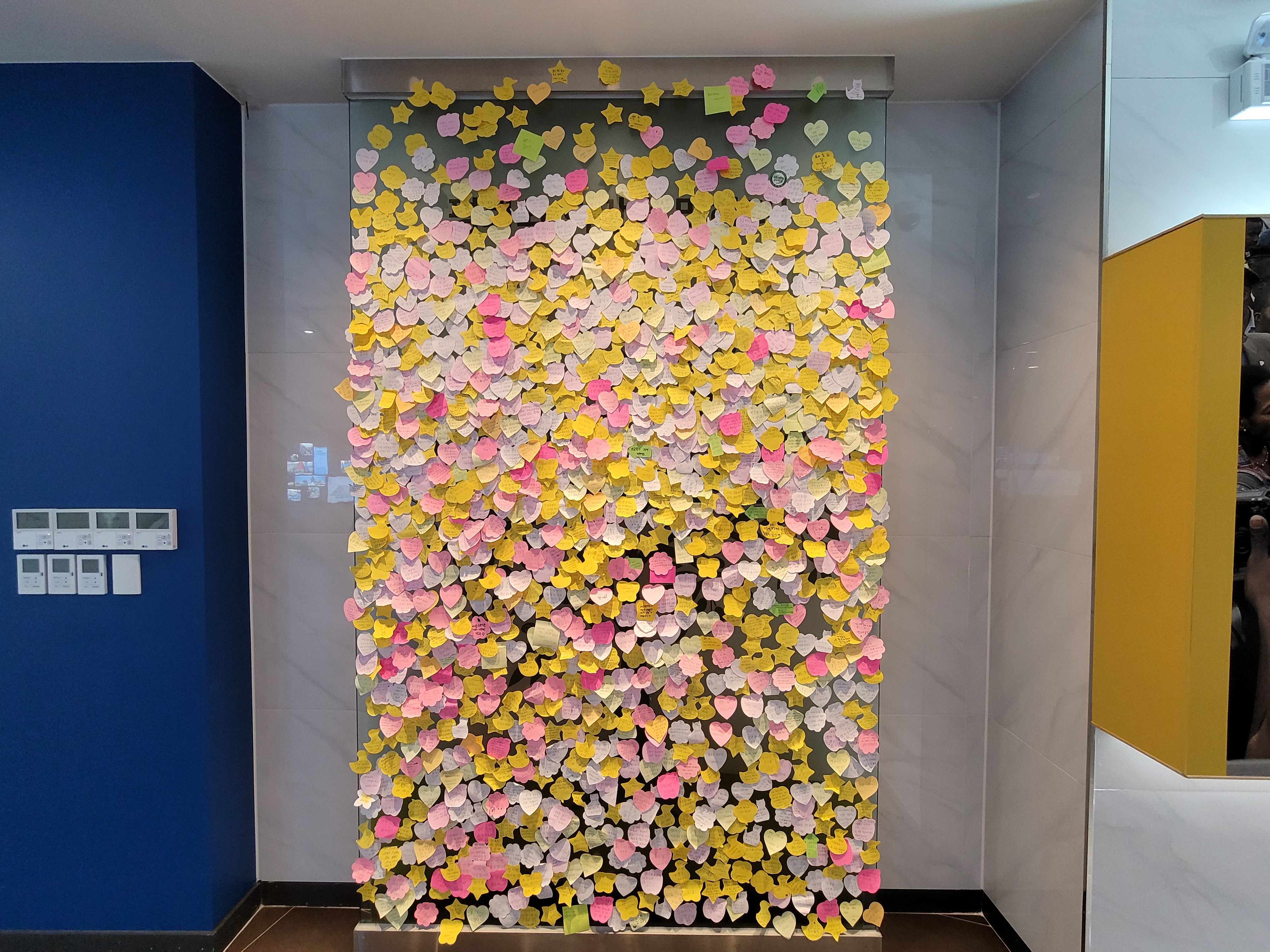 2층 기념실 끝에는 반기문 총장을 존경하거나 자랑스러워한다는 글, 나도 반기문처럼 유엔 사무총장이 되겠다는 다짐 글 등이 있습니다.