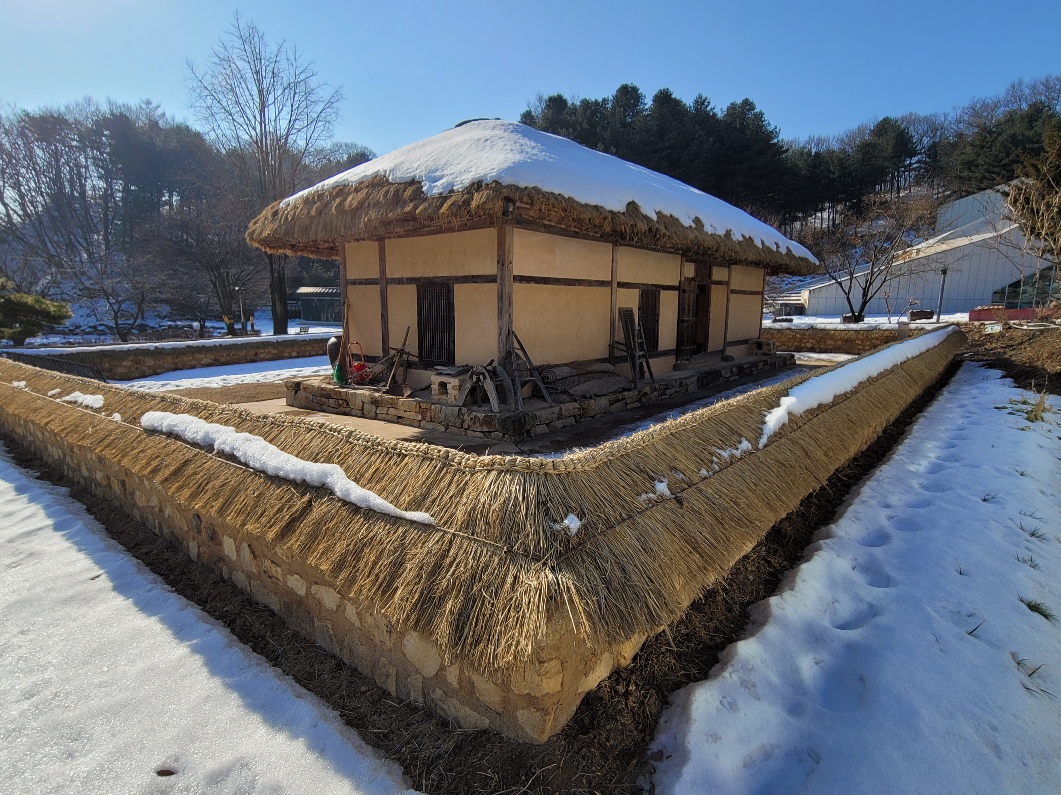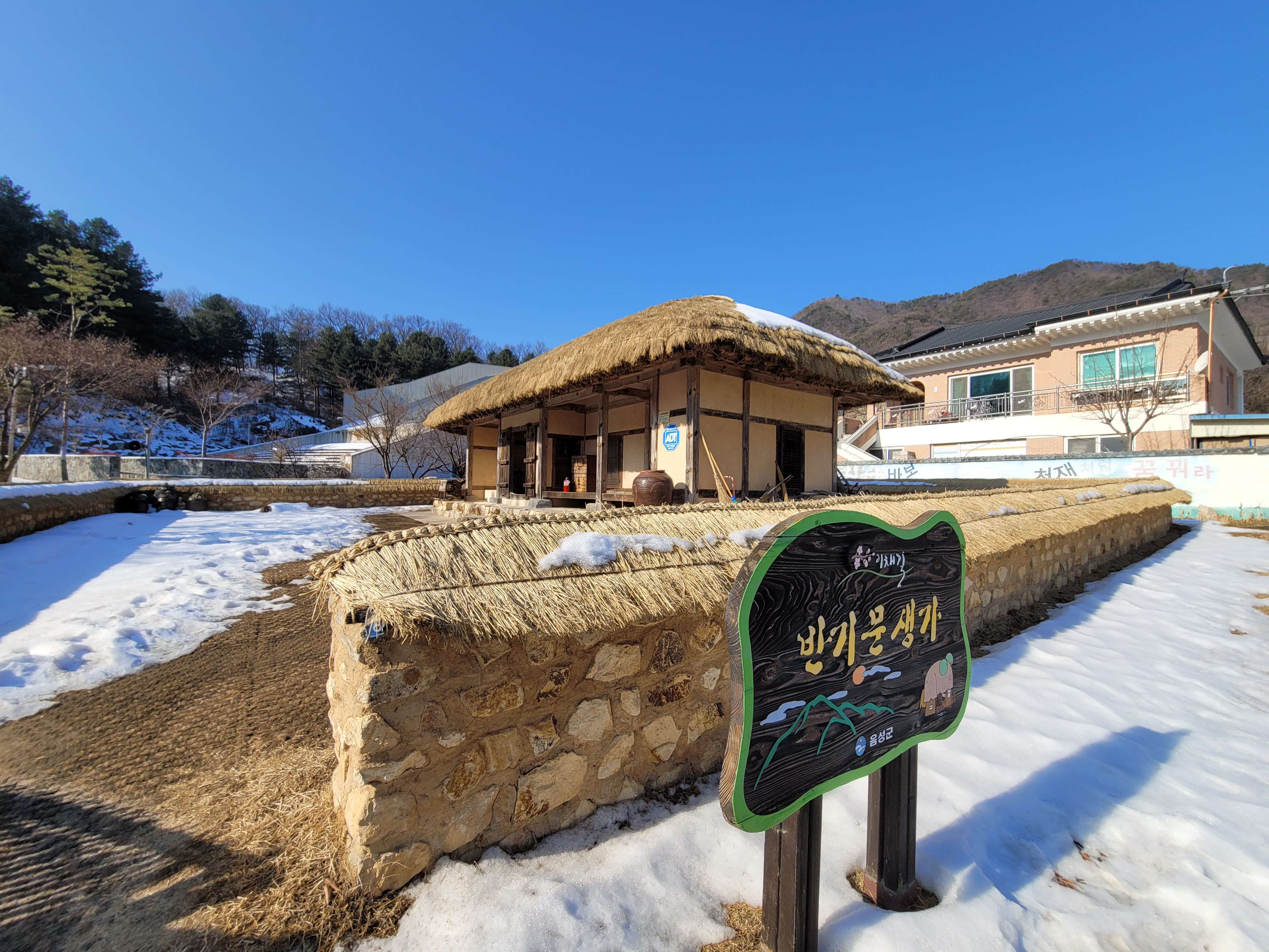 반기문 생가는 음성역에서 버스(816번, 602번)을 타고 상당1리에 내리면 됩니다. 음성역에서 버스로 26분 소요됩니다. 시골이라 버스가 자주 오지 않는 점이 조금 불편한데요, 다른 버스(506번)도 있으니 먼저 오는 버스를 타시면 됩니다. 가장 먼저 들른 곳은 반기문 생가입니다. 눈이 쌓인 시골집 감성 돋네요. 어렸을 때에 시골에서 보던 초가집 그대로입니다. 지금은 이런 초가집을 보기 힘들죠.