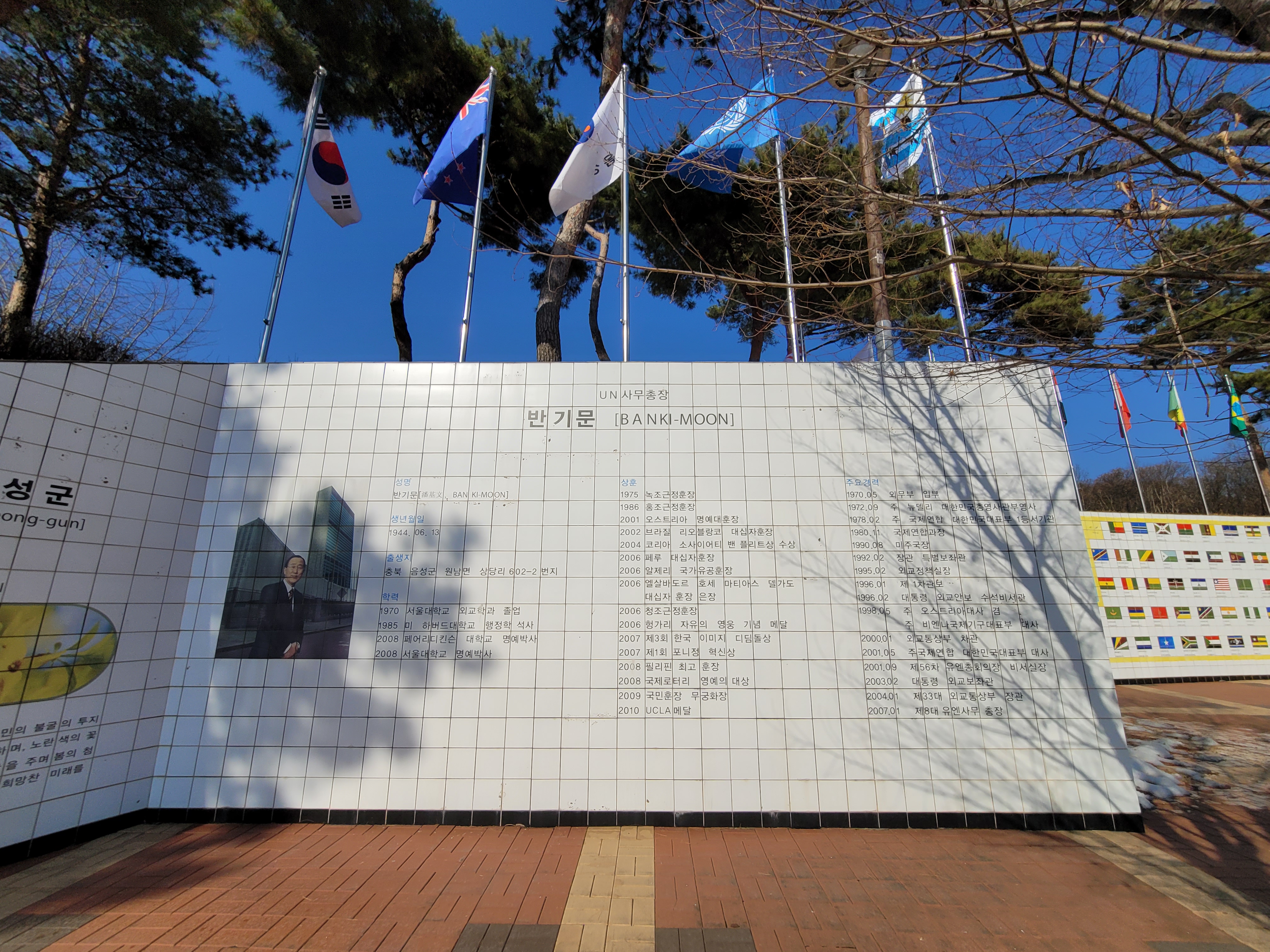 평화랜드 좌측에 반기문 프로필이 적힌 벽이 있습니다. 이력을 보니 정말 화려합니다. 정말 존경 받을 만한 인물이네요.