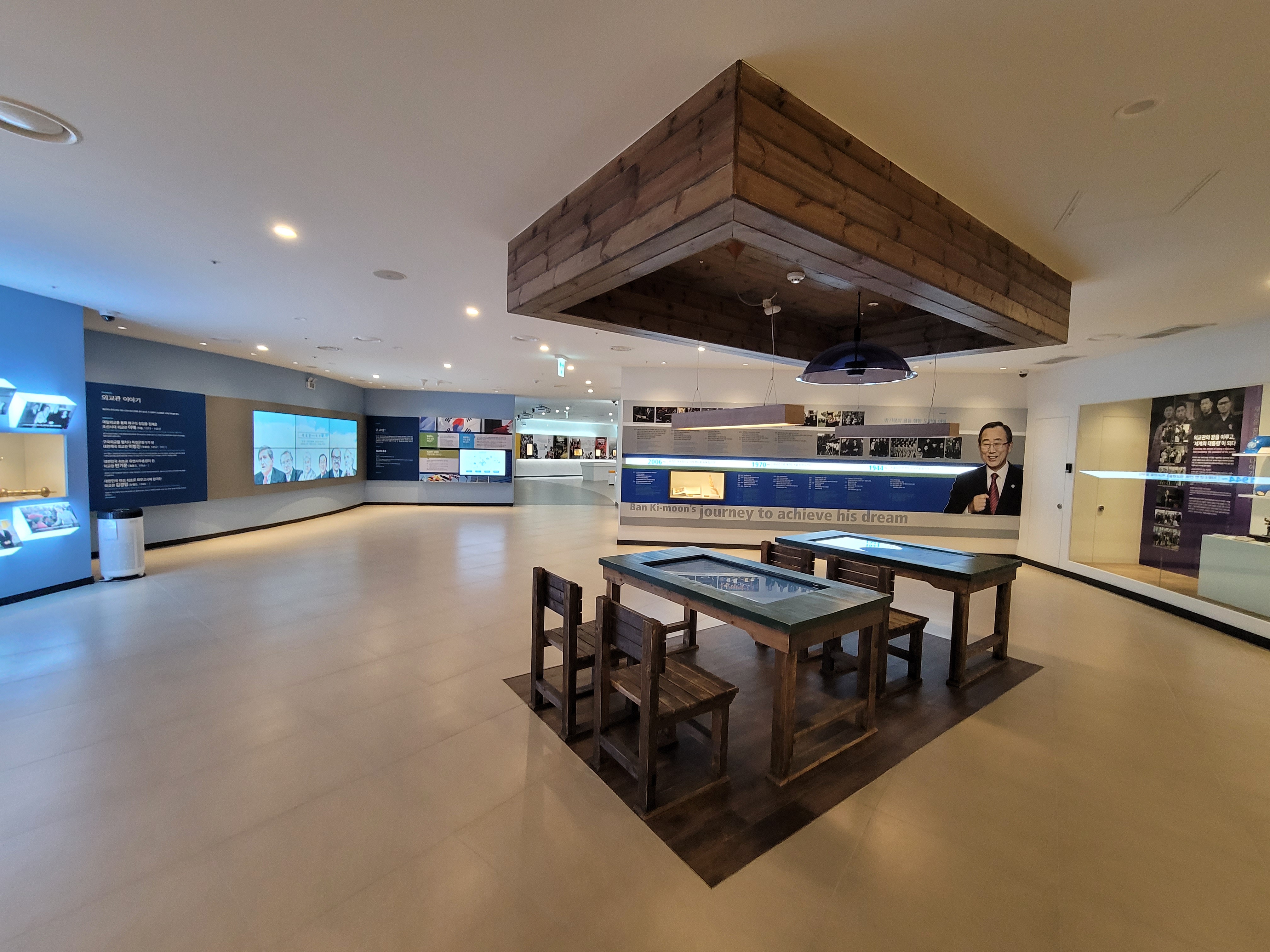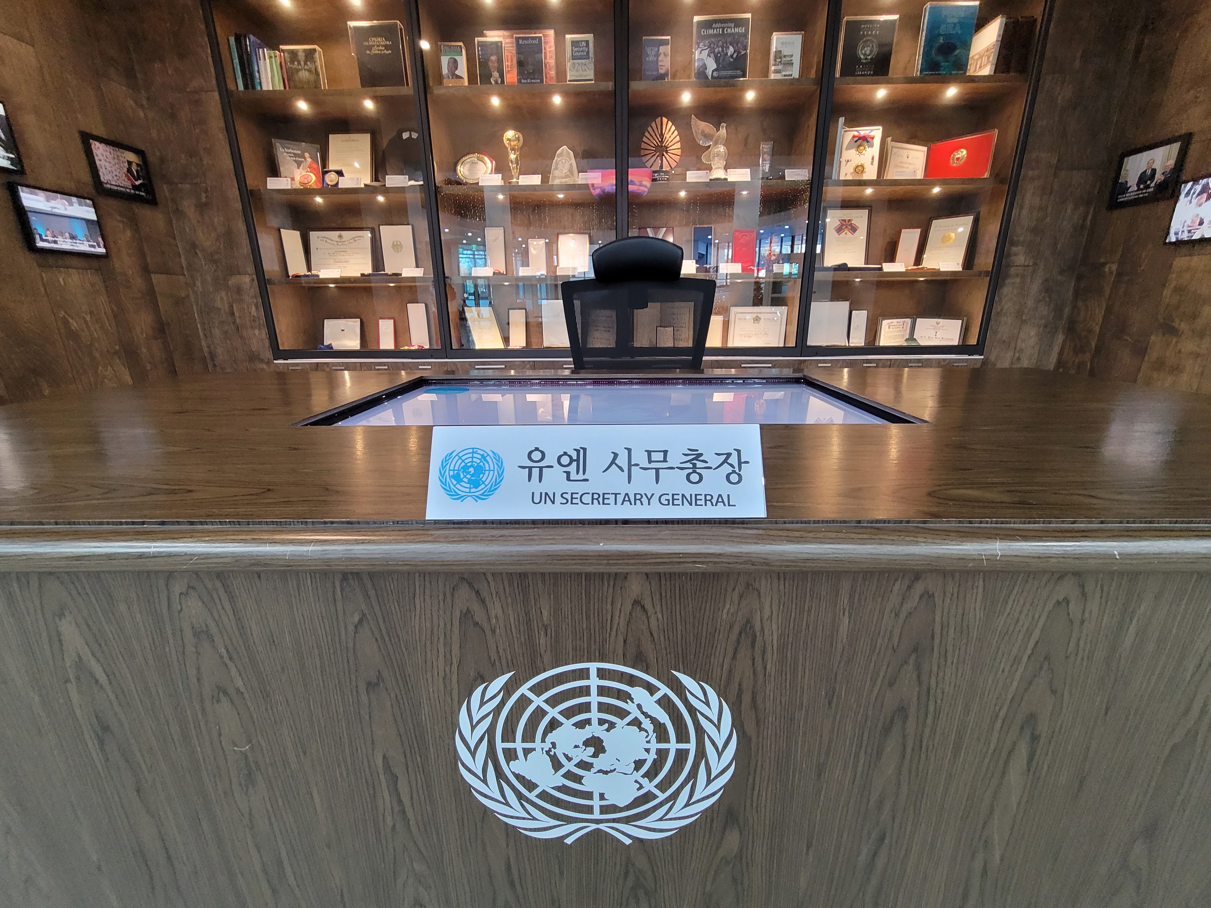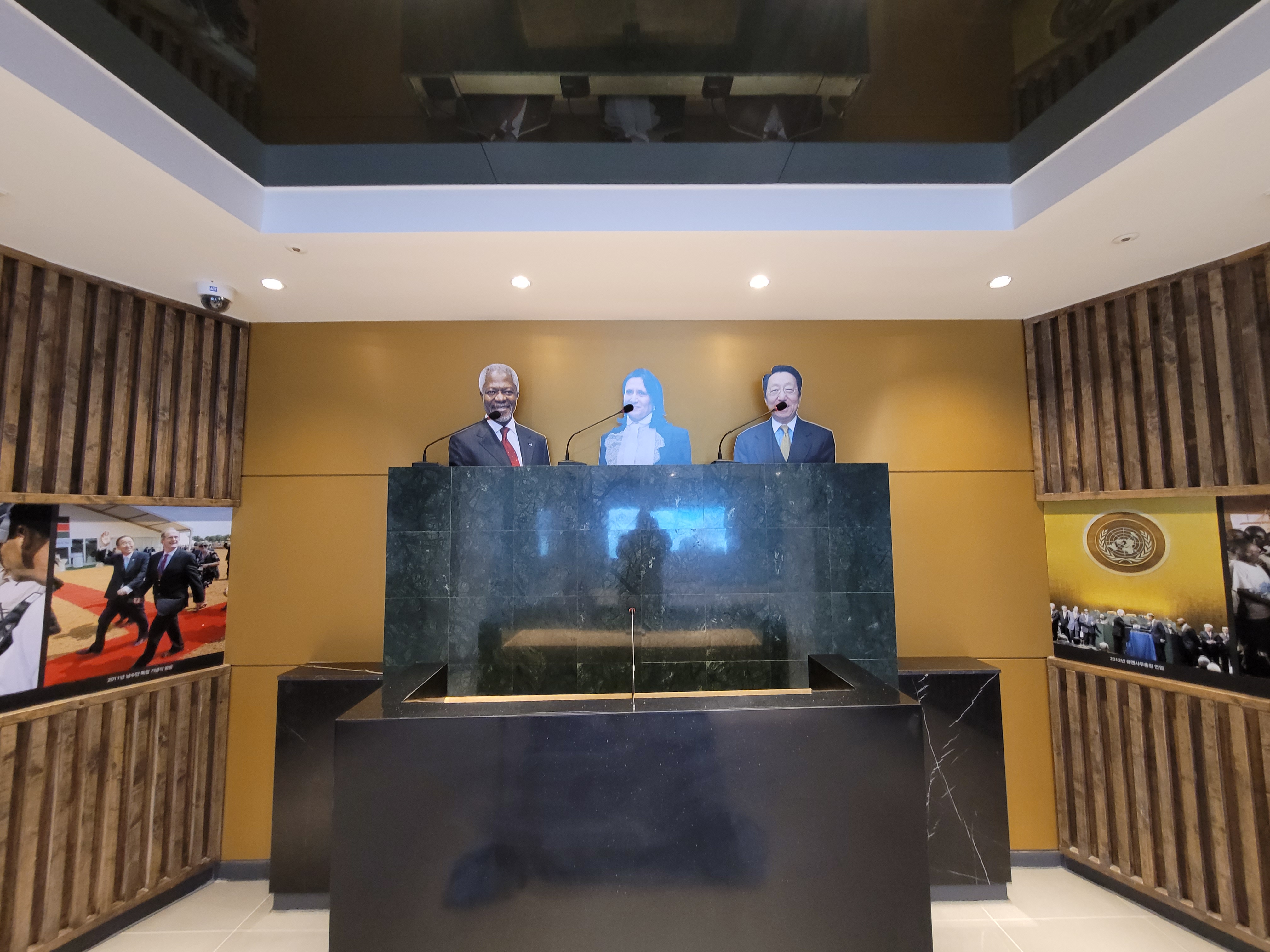 1층에서 눈에 띄는 것은 세계문화체험실입니다. 이곳에서 유엔 사무총장이 집무하던 책상과 의자에 앉아 기념촬영을 할 수 있습니다. 아이들이 온다면 이곳에 앉아 '나도 유엔 사무총장이 될 거야~' 하면서 원대한 꿈을 키우는 데 아주 좋은 포토존이 될 것입니다.