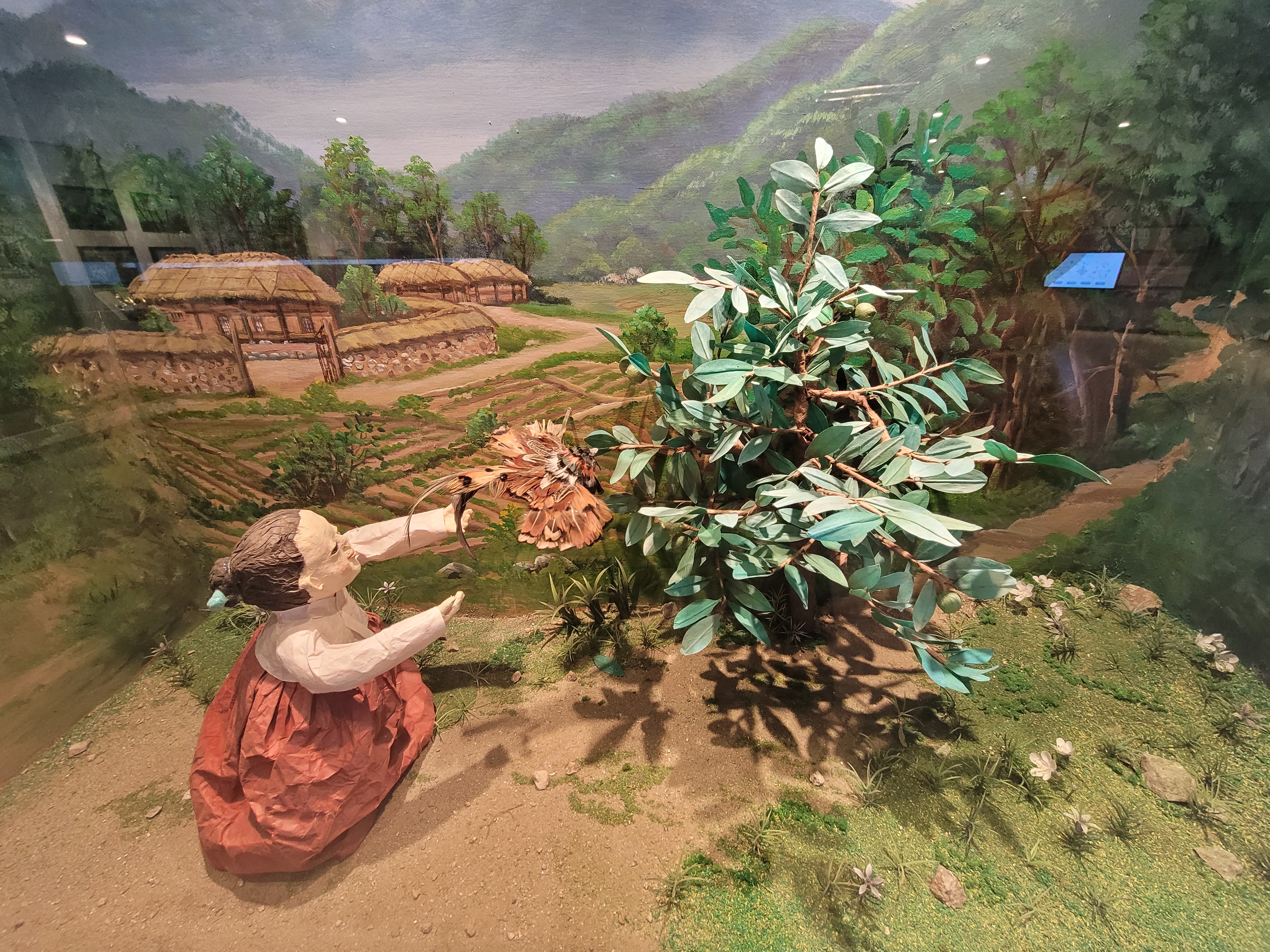 반기문이 어떻게 해서 유엔 사무총장까지 할 수 있었을까요. 기념실에 전시된 태몽 이야기와 디오라마를 보니 신기합니다. 반기문의 어머니 신현순 여사는 아주 진귀한 태몽꿈을 꾸었다고 하네요. 밭에서 집을 하고 집으로 돌아오는 길에 호두가 주렁주렁 달린 탐스러운 호두나무가 눈에 들어왔습니다. 호두를 어떻게 딸까 궁리하고 있는데, 나무 꼭대기에서 수꿩인 장끼 한마리가 내려와 앉았습니다.