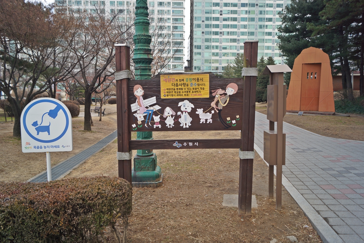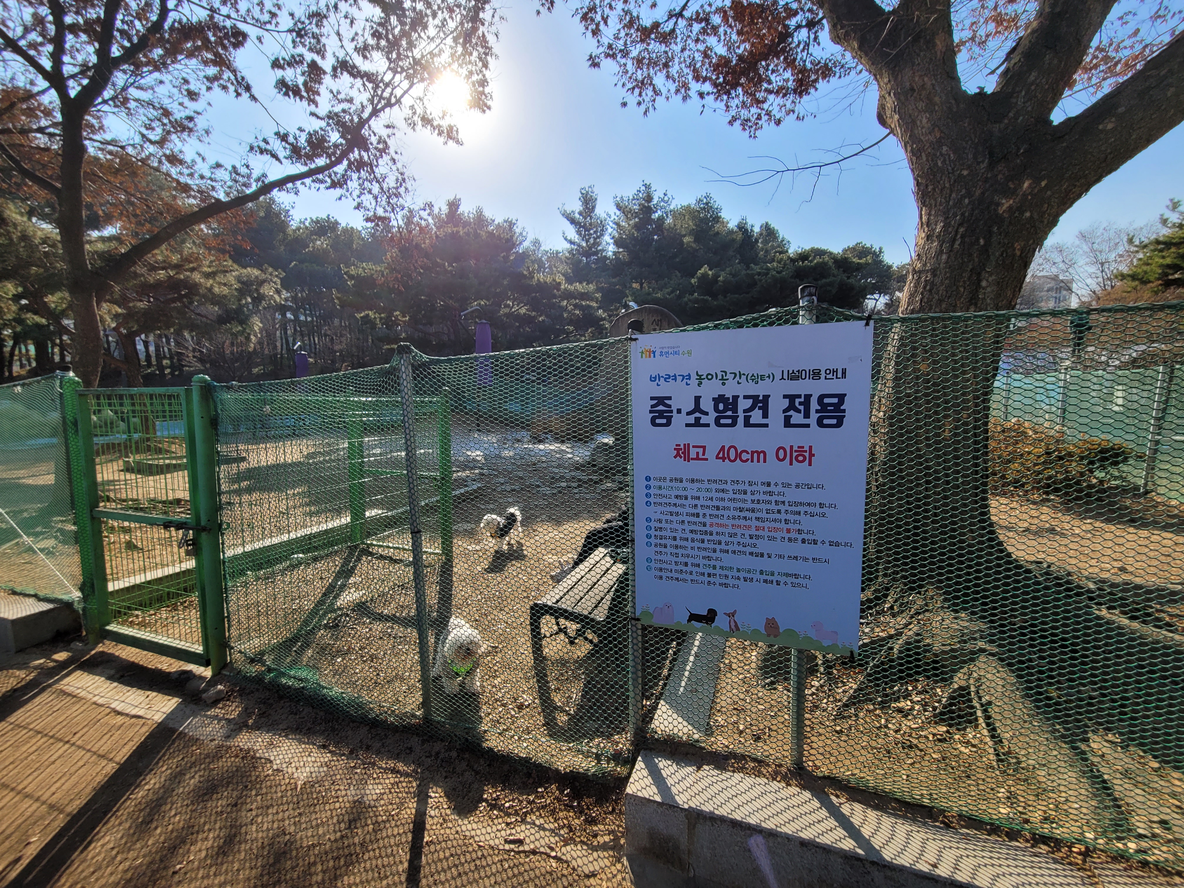 올림릭공원에는 반려견 놀이터도 있습니다. 애견주와 함께 산책하는 모습이 여유롭기만 합니다. 여기서 잠깐만요, 반려견을 데리고 공원에 오실 때는 꼭 목줄 착용, 배설물 즉시 수거, 맹견은 입 가리개 착용 등 애완견 동반 에티켓을 반드시 지켜주셔야 합니다.